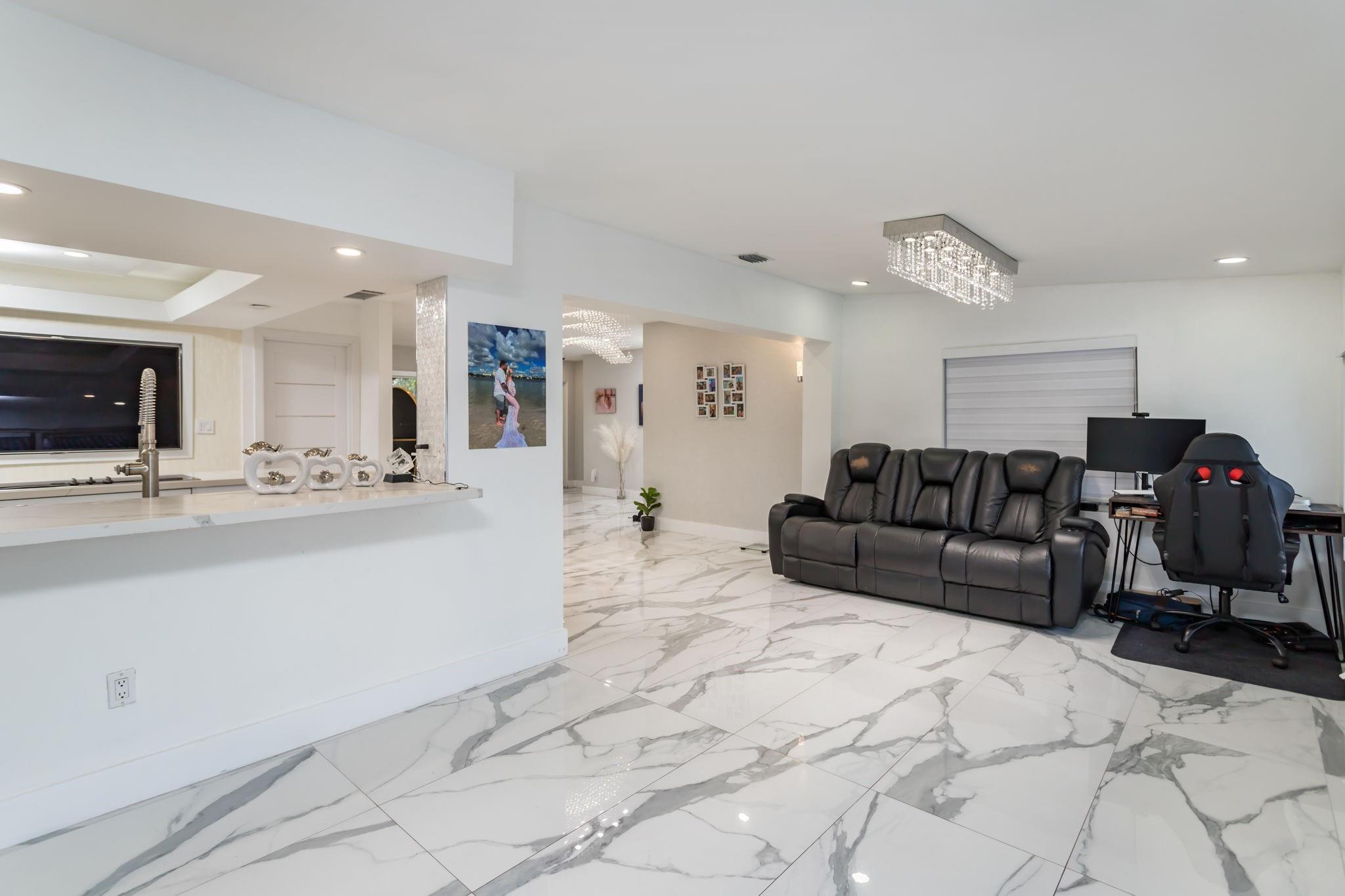 Step into luxury and elegance with this completely remodeled house, meticulously crafted for the modern homeowner. Every corner has been remodeled to perfection, boasting sleek ceramic floors, designer fixtures, and impact windows that flood the space with natural light. The open-concept layout seamlessly connects the gourmet kitchen, outfitted with top-of-the-line appliances and quartz countertops, to the spacious living area, creating an ideal space for entertaining. With a backyard oasis and complete outdoor kitchen, perfect for al fresco dining and relaxation, pool has new diamond bright, this meticulously renovated home offers the epitome of contemporary living. Brand new metal roof and 5 ton AC unit. Don't miss the opportunity to make this exquisite property your own.