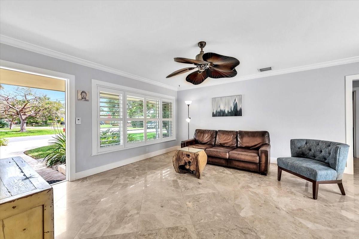 Great home in a great location! One of the last single family areas in hot up and coming Pompano Beach, East of Federal Hwy. Park your boat or RV on this spacious & open 3 bed, 2 bath home with huge fenced in yard on a corner lot featuring many upgrades, such as paved circular driveway, full impact windows, travertine flooring in living area, wood looking tile in bedrooms, classic timeless kitchen design with stainless steel appliances, custom closets, beautiful upgraded baths, large laundry/storage closet and huge peaceful yard with plenty of room for pool & entertainment. Home is just minutes from the beach, boat ramp, municipal park, golf course, restaurants, shops, nightlife and all the redeveloped East Pompano Beach has to offer. Can't miss! Grab your golf cart 7 enjoy East Living!