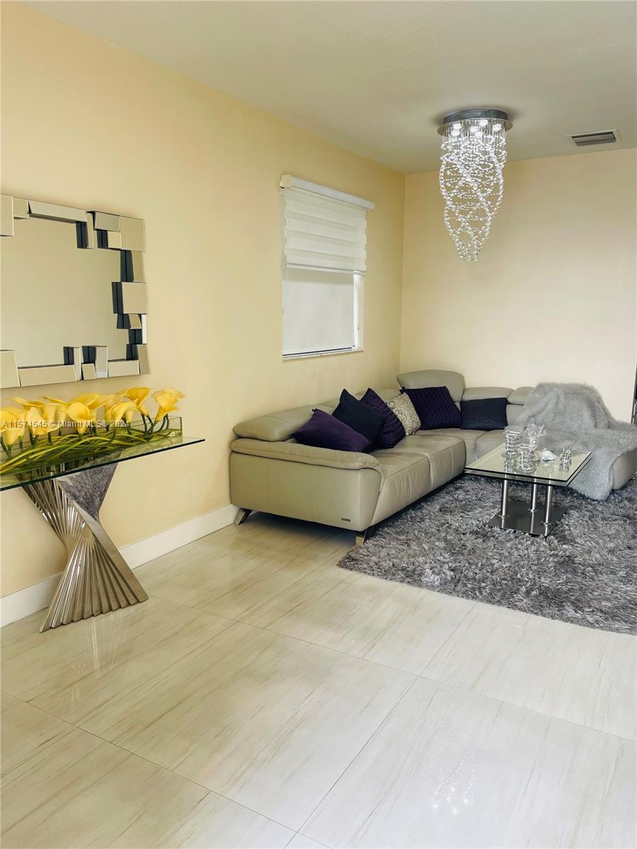 Beautiful townhouse in Astoria at Central Park. This 4 bedroom/2.5 bathrooms home has an excellent layout with green area side space, only one detached neighbor, no neighbor in the back. Garage for 1 car and driveway for 3 additional cars. unit was upgraded with new ceramic tiles throughout, new kitchen with quartz countertops & stainless steel appliances. Full size washer and dryer, new blinds, and a spacious backyard that is fully fenced. Enjoy the privacy of this gated community , Member of Central Park Clubhouse with best amenities in the area. Great School District A+, shopping centers, restaurants, shops, close to Turnpike and Palmetto Expressway, Miami International airport .