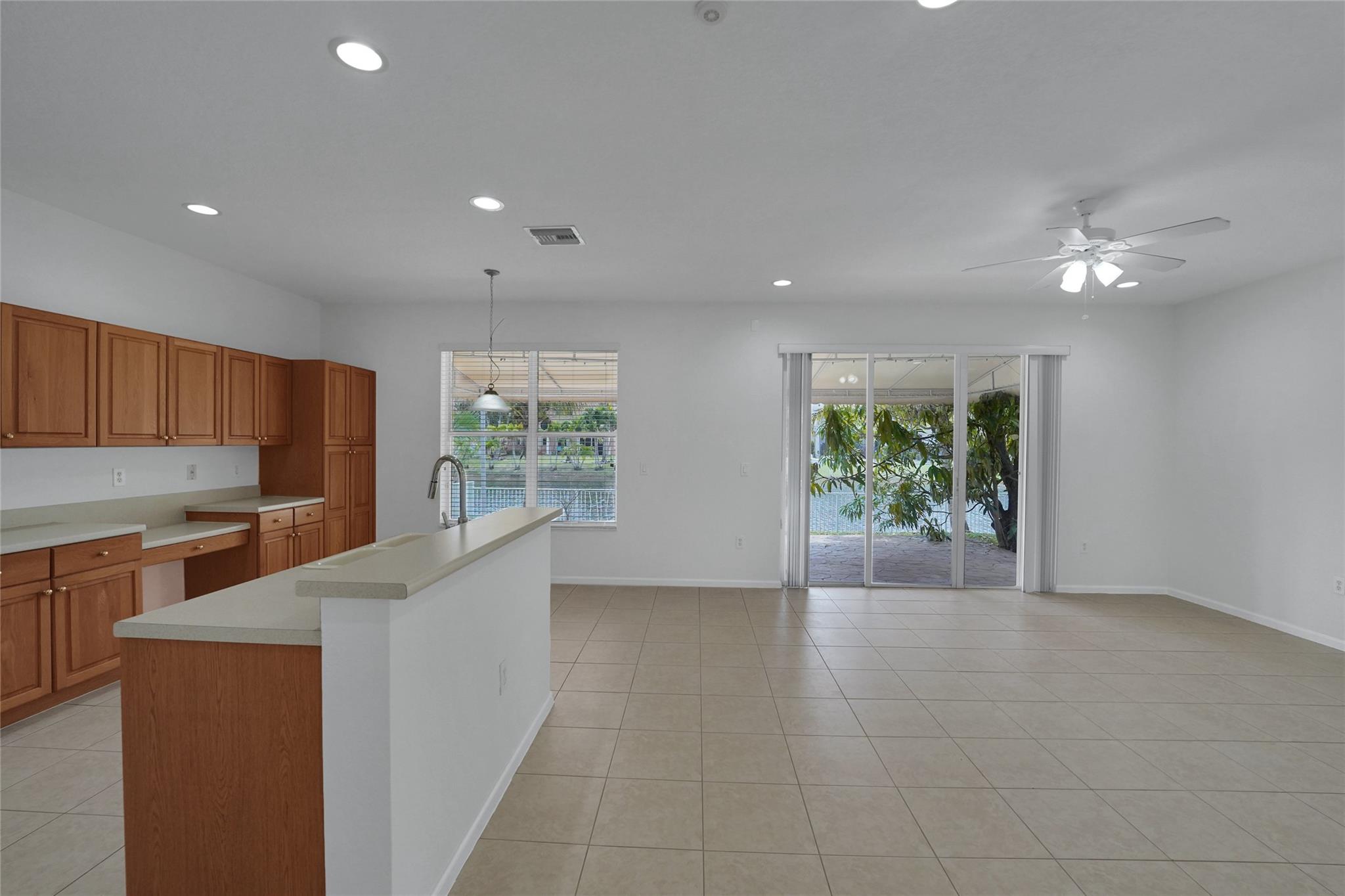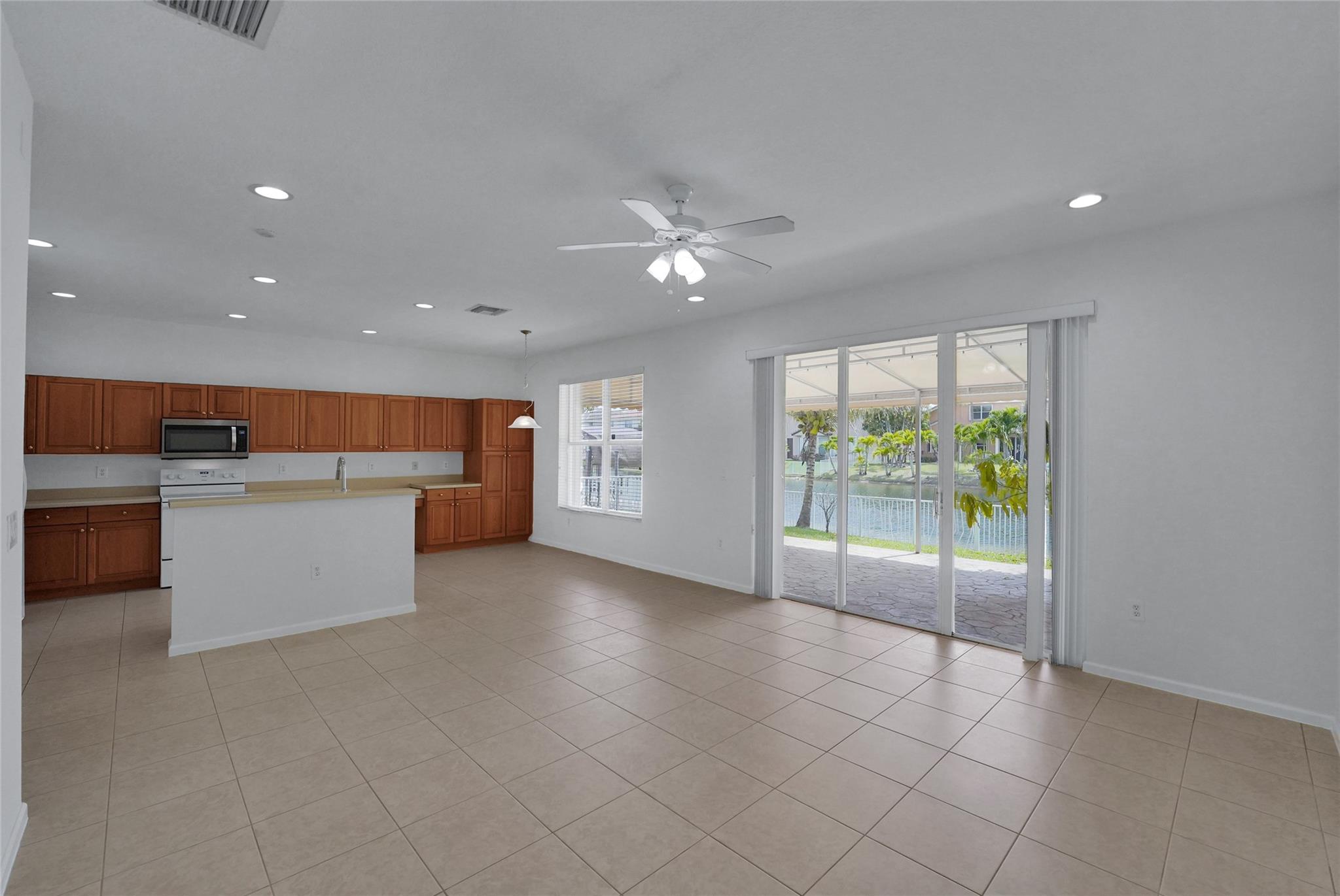 Welcome to your beautiful waterfront 5 Bed / 3 Bath home located inside the private and guard-gated community of Silver Isles. This spectacular two-story home boasts a generous layout with high-volume ceilings, tile floors, eat-in kitchen, a center island, plus a separate breakfast area with water views and a brand new 2023 roof. The home offers a spacious master bedroom, 3 additional bedrooms and a laundry room upstairs. 1 full bedroom and full bathroom at ground level. Best of all, this fully-fenced home has a big backyard with direct lakefront views. Community amenities include a clubhouse, resort-style pool area, playgrounds, picnic area, 24-hour security, and a gym!