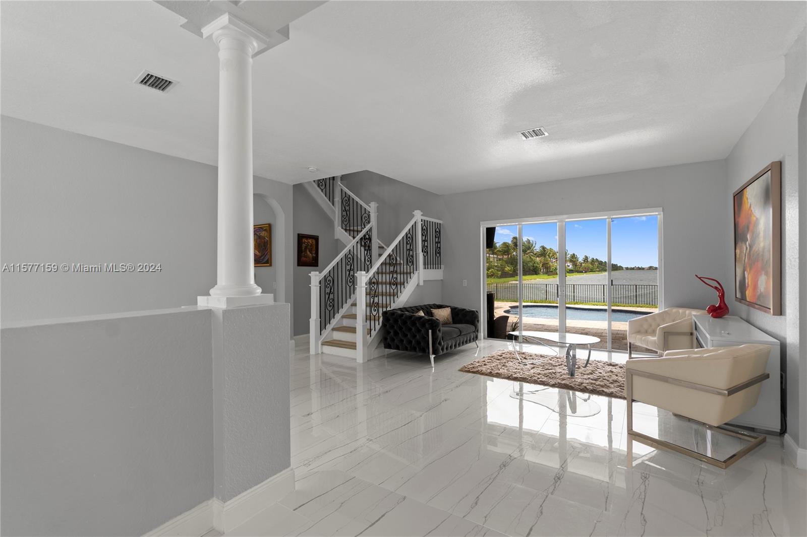 STUNNING SUNSET FALLS!! Come see this Majestic Beauty ready for a HUGE FAMILY! This home boasts 6 bedrooms PLUS A LOFT with 5 FULL BATHS , Endless LAKE VIEWS and Heated Saltwater POOL recently redone! BRAND NEW PLUMBING throughout the entire home, BRAND NEW GORGEOUS NEW FLOORS New Ac compressor Stunning light fixtures on first floor, and upgraded kitchen fit for a chef that opens to a HUGE family room and expansive views of the lake and pool. Downstairs has a bedroom and FULL bath for guests and extended family. Upstairs has 5 bedrooms and private baths. The Master bedroom is enormous with its own balcony with stunning views! The home has Accordion shutters for your convenience and protection! So much to see in this home! No neighbors in front for extra privacy.