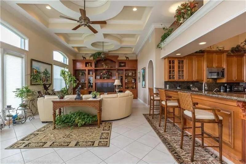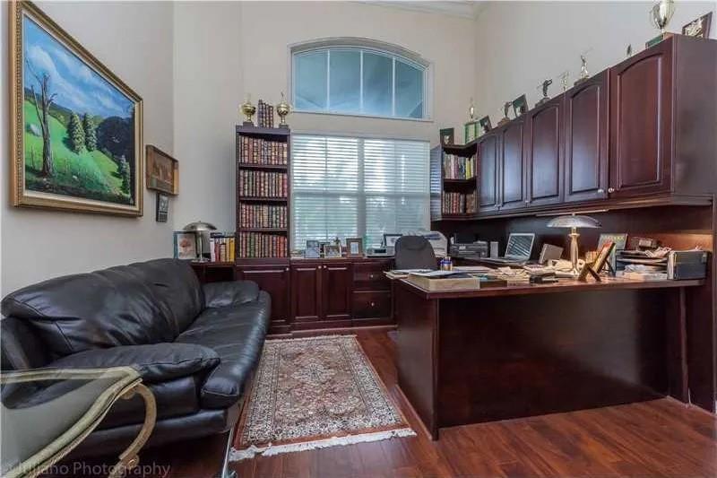 BOM- Welcome to luxury living in Davie's, Emerald Isles Estates. This spacious 4 Bed, 4 Bath home plus office on a builder's acre is a showcase of elegance. The interior boasts volume ceilings, architectural details, and wood crown molding. The Primary suite enjoys its own wing and features wood floors, double walk-in closets and large ensuite bathroom. Open floor plan features ceramic tile in common areas, formal dining, custom wet bar, gourmet kitchen w/granite countertop, custom wooden cabinetry and new SS appliances. Escape to your private pool oasis in the expansive backyard with covered patio, brick pavers, lush tropical landscaping, fruit trees & serene lake views for relaxation. A/C (2024), Water heater (2023), Roof (2022). Easy access to shops, restaurants, parks and FLL airport.