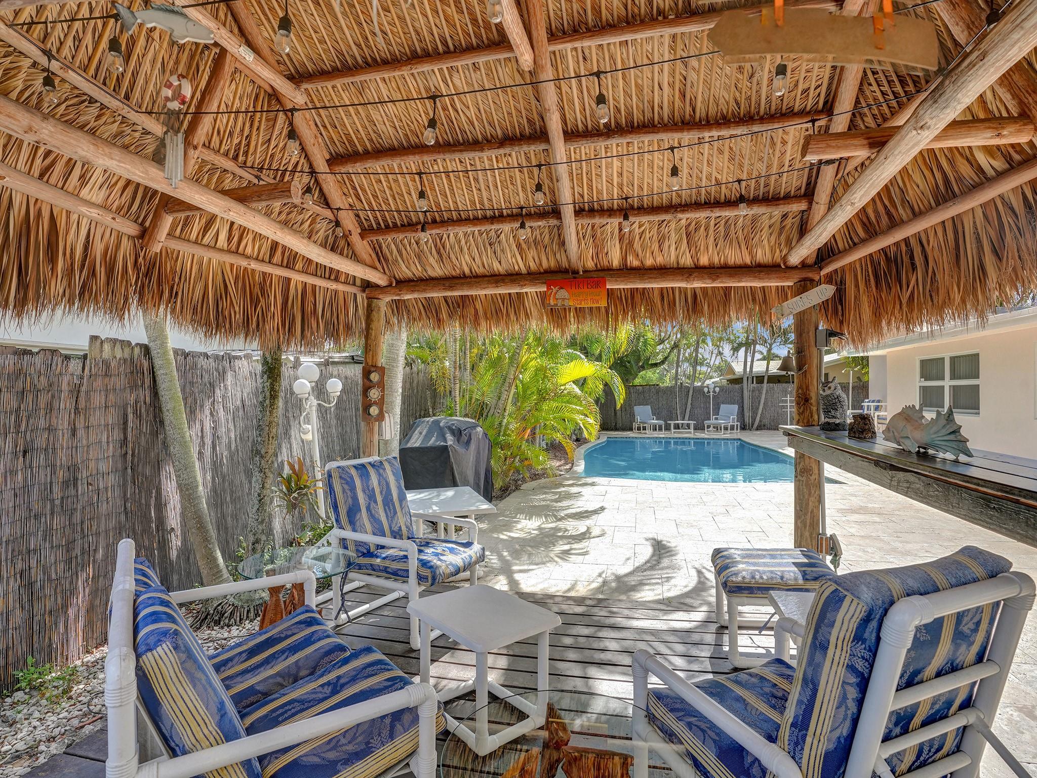 Welcome to your oasis in the heart of Palm Aire! Minutes from sun-kissed beaches, vibrant shopping spots, tantalizing restaurants, this gem is ready to welcome you. 2 bed/2 baths. Roof-2019. Safety? Check! Say goodbye to worries with complete hurricane protection: impact doors/windows, new-2022. A/C-2010. But let's talk about relaxation. Lounge by the recently re-marcited, heated saltwater pool, travertine deck surround, charming Tiki Hut. Paradise in your backyard on this oversized, corner lot! Investors, take note! This is a goldmine- short or long term rental potential, fully licensed by the city, county, state. Financials available upon request. Don't let the opportunity slip away. Your dream home, vacation escape, or savvy investment awaits! Larger than BCPA. Furniture negotiable