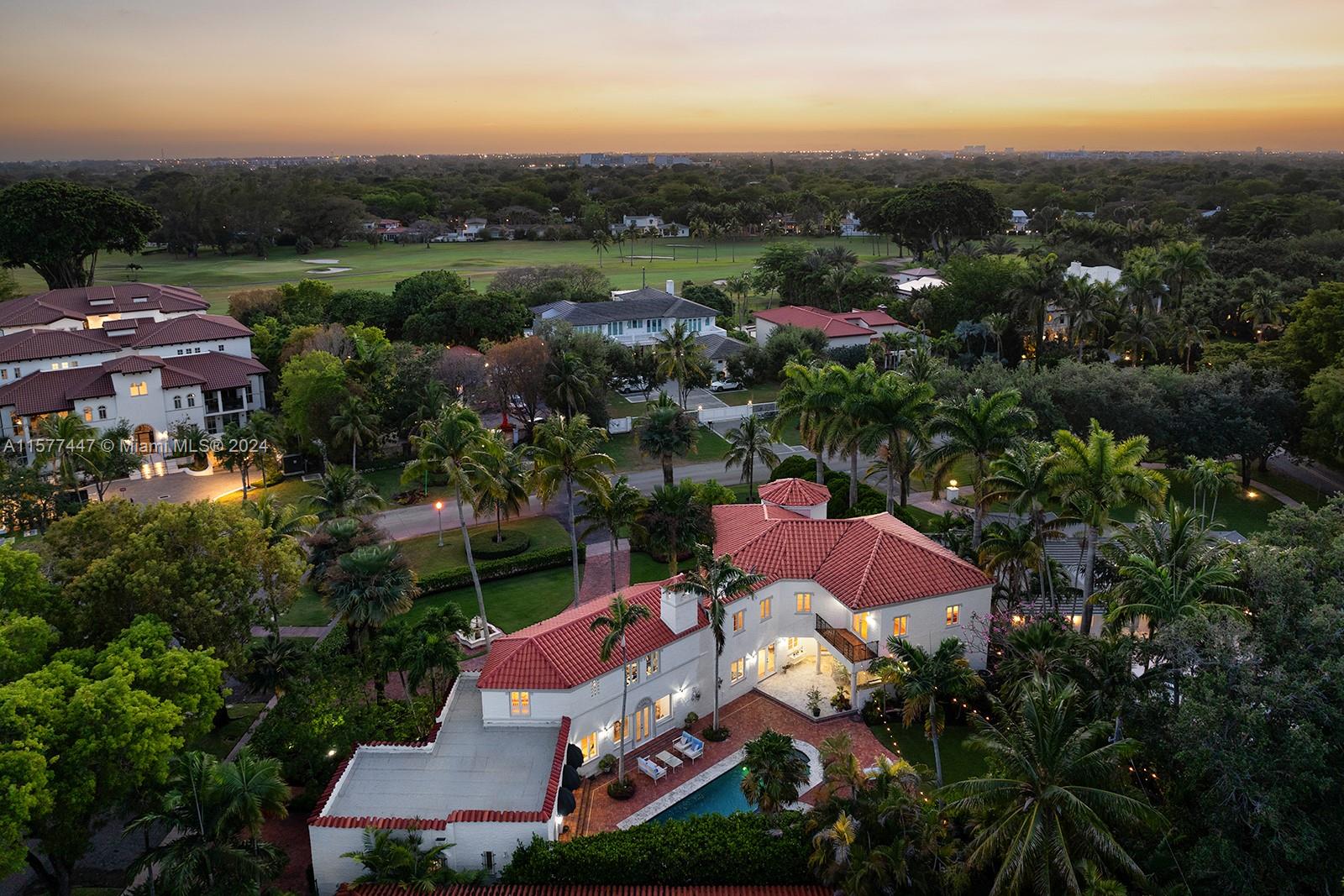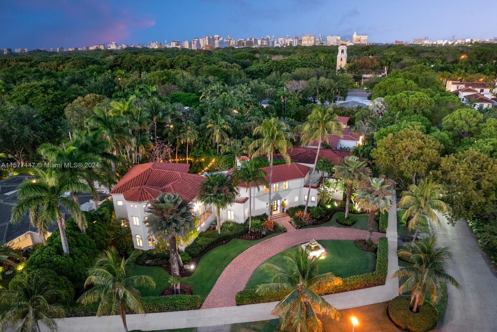 This elegant two-story 1924 Old Spanish is the epitome of quintessential living on one of Coral Gables' most prestigious street addresses. This architectural gem designed by Kiehnel & Elliot exemplifies the pinnacle of Mediterranean Revival Artistry. Situated on a 20,645 SF lot right in front of the iconic Biltmore Hotel, the tropical lush landscaping offers immense privacy & a serene atmosphere. The grand foyer overlooks the award-winning pool. 1st floor features 2 bedrooms, 2 full baths, renovated eat-in kitchen with Quartzite countertops, formal dining, living room & media room. 2nd floor features 5 bedrooms + den, 4 bathrooms & large primary suite and bath with built-in sauna, & covered balcony. Home has newer electrical, plumbing, impact windows/doors throughout.