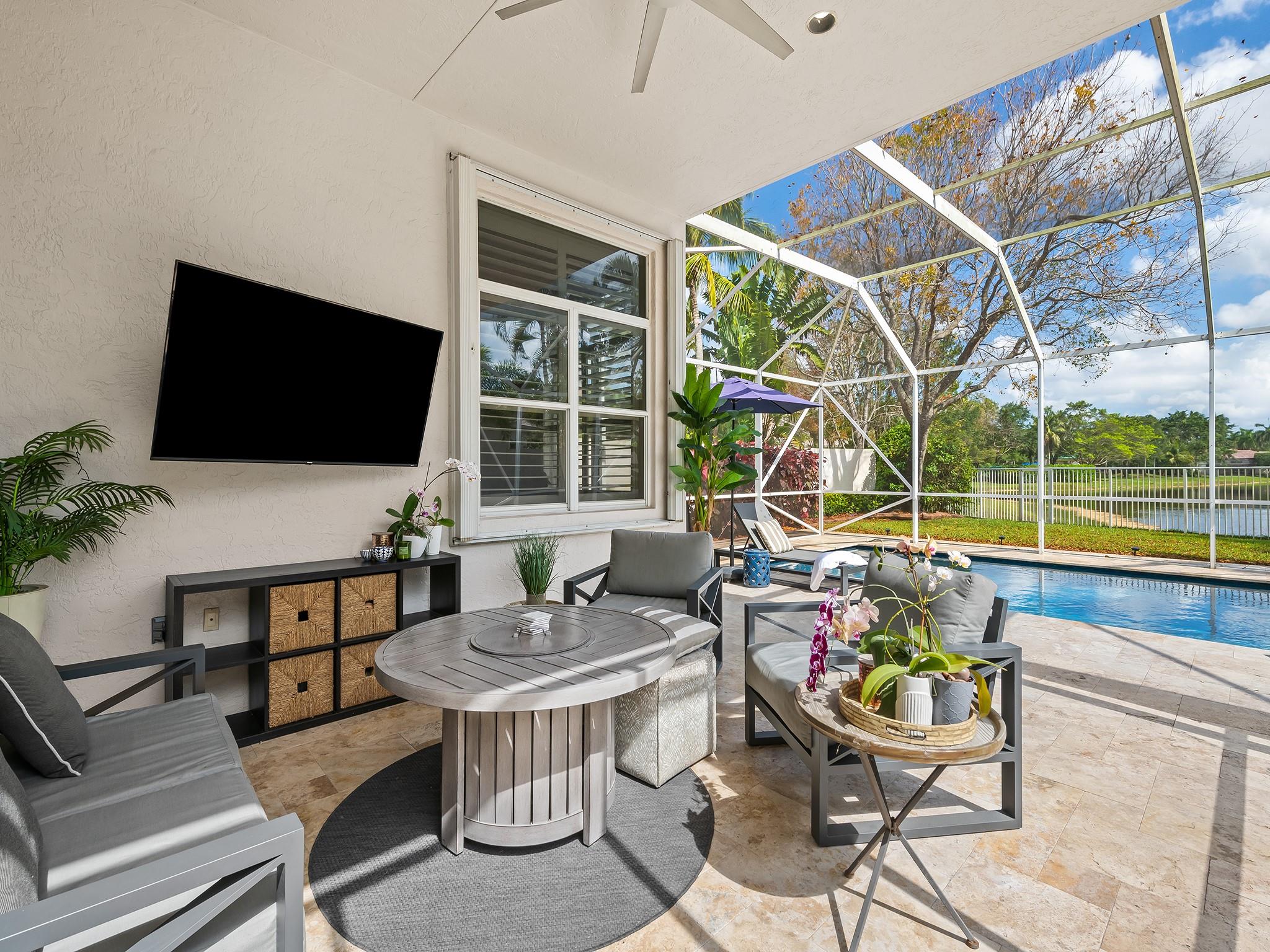 LAKEFRONT 3/3 POOL HOME IN THE MAINTAINED BAY POINTE NEIGHBORHOOD OF WESTON HILLS COUNTRY CLUB. This Golf and Tennis community offers the best in luxury living. Master suite overlooks the pool & patio, while a large master bath and walk-in closet provide added comfort. Three way split bedroom plan provides flexibility for living and entertaining. Great eat-in kitchen. Newly renovated saltwater pool and travertine deck. Meticulously planned landscape and walkways wrap around the fully fenced backyard, showcasing stunning long-range lake views for the best Florida outdoor living. Lawn/Landscape care, fertilization, pruned trees, exterior pressure cleaning and painting are included in your monthly. Exterior painting of subdivision is scheduled, ensuring beautiful, well-maintained community.