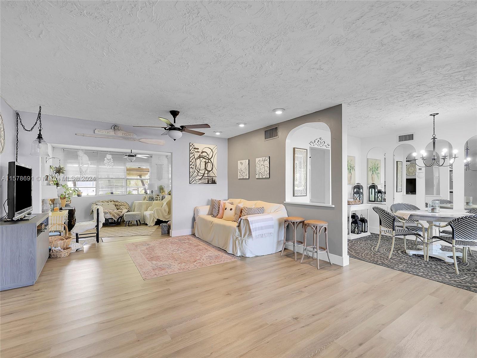 Spacious layout with large living room, dining room, and family room. Backyard is like an oasis with beautiful landscaping and relaxing water view. Separate laundry room and storage. . All bedrooms are a nice size. Metal Roof is 2020, AC 2018, Water heater 2024. White Shaker style cabinets with white quartz counters.