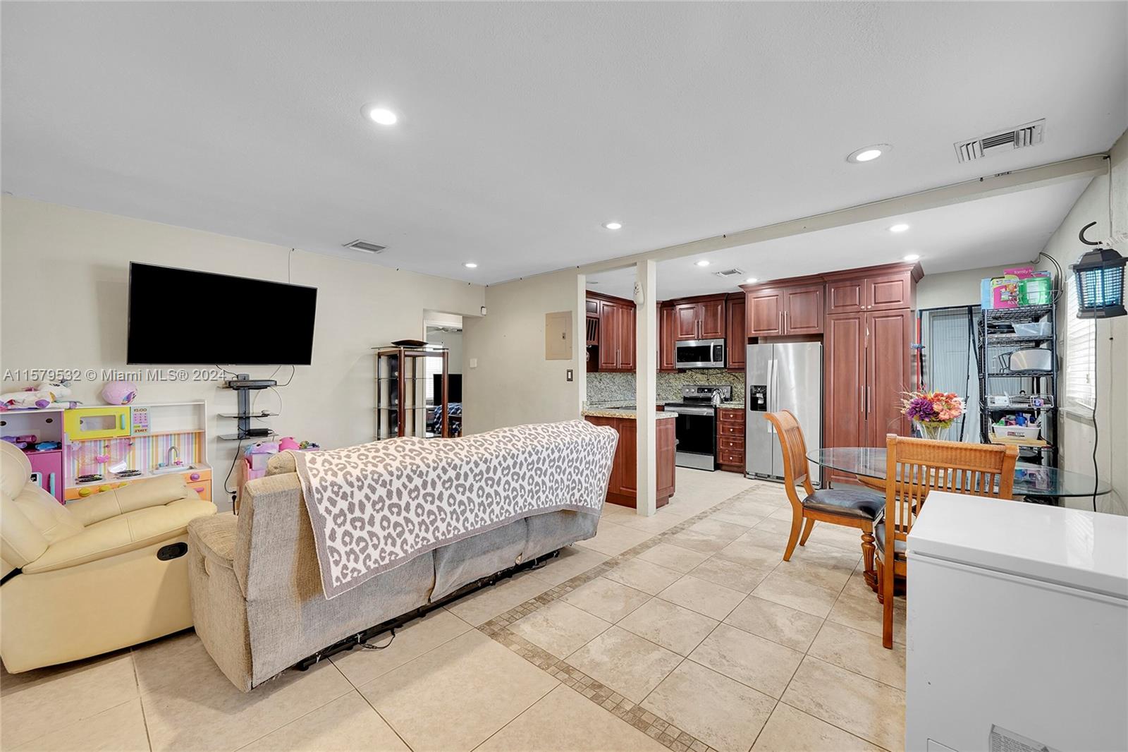 Calling all first time buyers! This is the home for you & is located in a wonderful community, known for its friendly neighbors and tranquil ambiance. It is conveniently located near schools, parks, and shopping centers, making it the perfect place to create lasting memories. Take a walk into the quaint city of West Park where this 3/2 home sits on over a 7,000SF lot. A great location with less than 20 minutes from the FTL airport, train, &highways this property is conveniently situated to suit a busy or relaxed lifestyles. The kitchen is a chef's delight, with its light tile floors, stainless steel appliances, and light stone countertops. The textured ceiling adds a touch of whimsy to the space, while the dark brown cabinets provide plenty of storage for all your culinary needs.