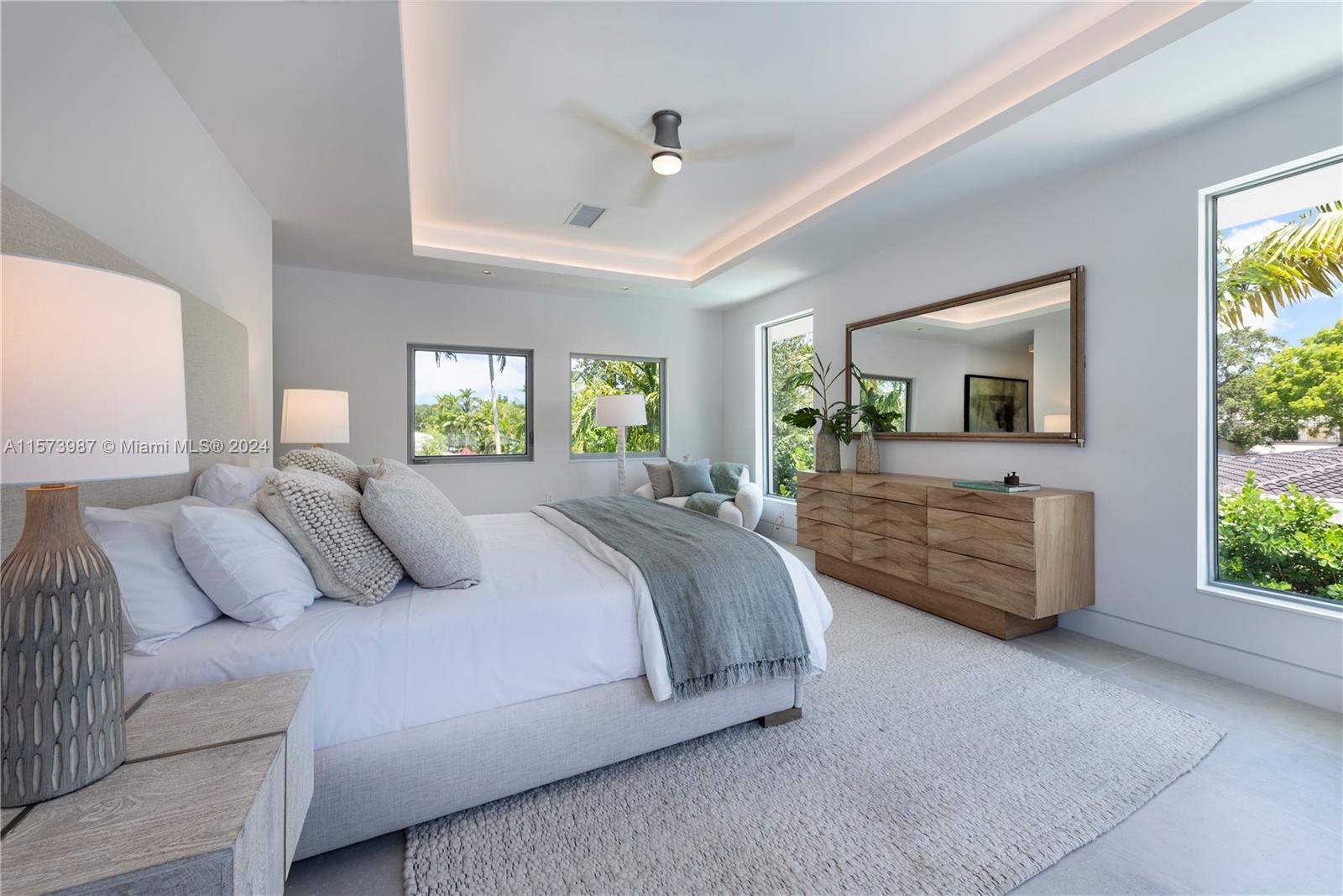 Newly built luxury home, combines elegance and advanced technology. Over 4360 sq ft of living area and 10 ft ceilings throughout. A stunning and sophisticated main living area has floor to ceiling efficient low-e impact windows. A high-end kitchen with Italkraft cabinets and Wolf Sub-zero appliances, complimented by a custom wet bar. The functional layout offers a bedroom on the lower level suitable for various uses. Primary bedroom with sitting area, walk in closet and marble adorned primary bath. Take your entertaining and family fun outdoors, enjoy beautiful mature landscaping by CLAD, pool and large covered terrace. State of the art amenities such as Lutron RadioRA3 lighting system, Cat-6 wiring, are just a few of the many features. The pinnacle of comfort and luxury in Miami Shores.