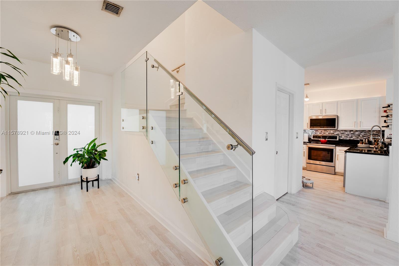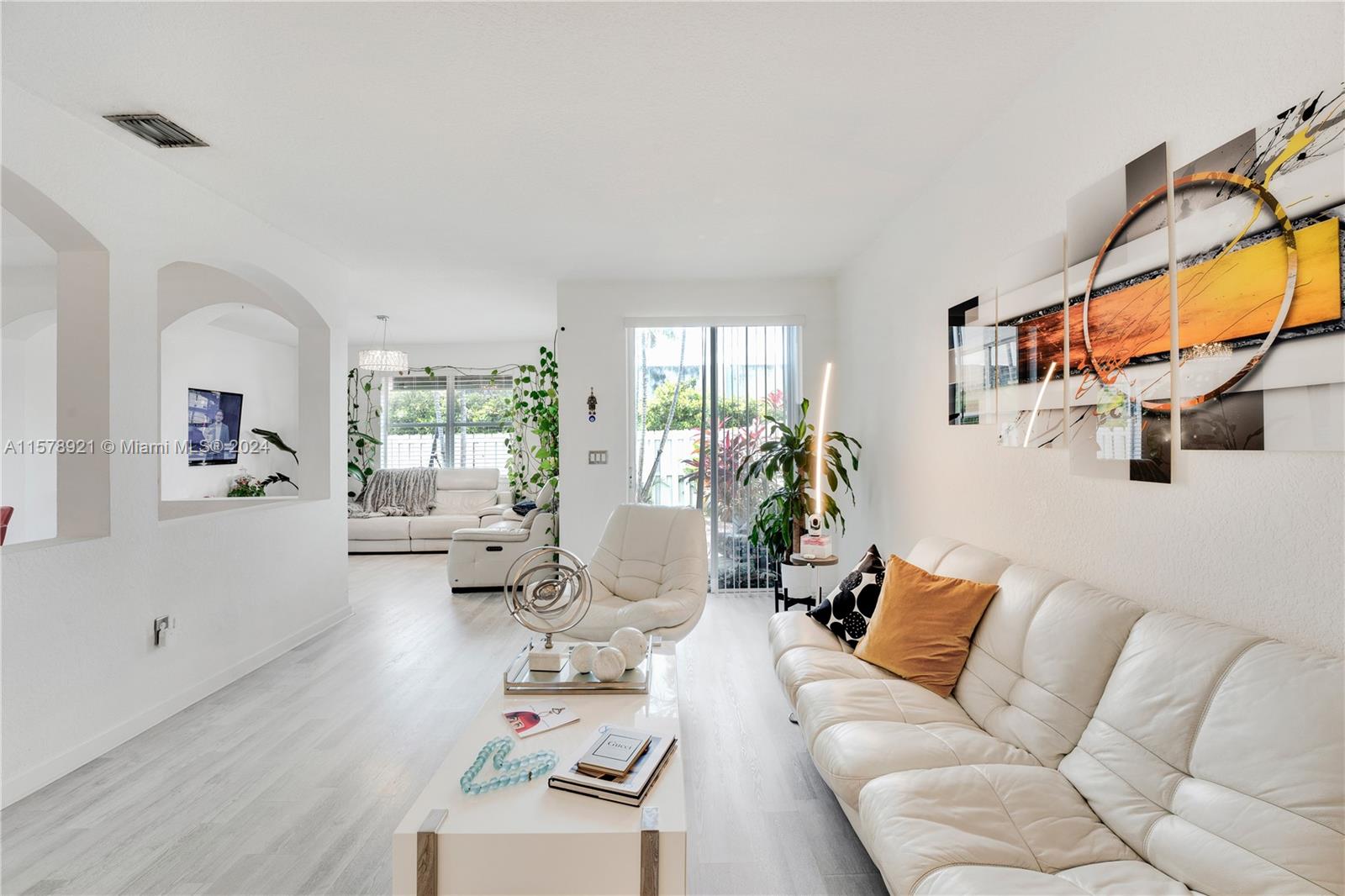 Beautiful corner house located in the secluded community of Barbados, Doral. This bright and cozy home features 4 bedrooms, 2 and a half bathrooms, and a private patio with a double car garage. The open kitchen and high ceilings provide a spacious and welcoming atmosphere. The house also includes a laundry room and a new AC unit. All the floors have been recently upgraded to laminated flooring. The property is situated in a gated community, ensuring privacy and security.
