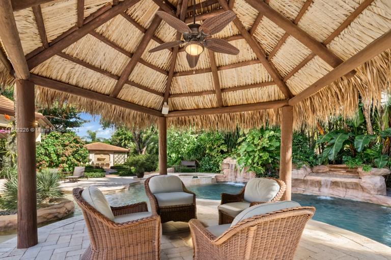 AWARD-WINNING ARCHITECTURE! CUSTOM RESORT-STYLE POOL**STUNNING GARDENS**BASKETBALL & VOLLEYBALL COURTS**DETACHED 2/2 GUEST HOUSE. This exquisite one-of-a-kind near-acre gated estate boasts exceptional finishes throughout. The open floor plan of the 6bed/6bath magnificent transitional main residence includes a library, 2 family rooms, wine pantry, wet bar adjacent to a spectacular game room, spacious home gym, fireplace, whole house generator, outdoor cameras, & integrated sound & network systems. Expertly landscaped grounds grace a resort pool with 2 waterfalls & expansive covered patio with fireplace & summer kitchen. This masterpiece is a private oasis of elegance & comfort awaiting a discerning new owner who demands only the best & appreciates the extraordinary! Buyer’s Broker Welcome