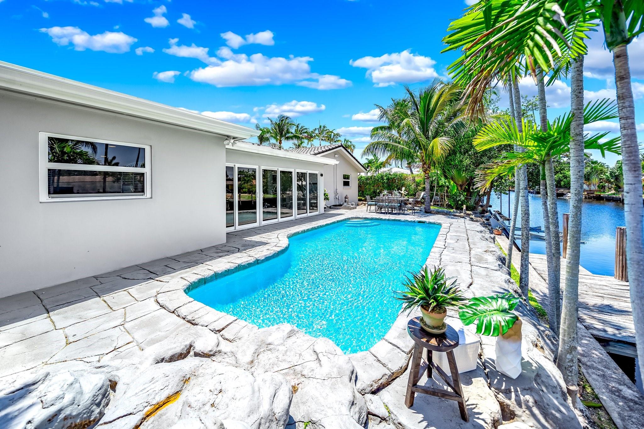 Completely renovated waterfront ocean access pool home in Coral Ridge Isles. 4 bedrooms 3 baths split floor plan, oversized 2 car garage, with hurricane impact windows and doors throughout. Kitchen has quartz countertops and white cabinetry. All bathrooms completely updated. Tropical backyard with a pool with new diamond brite and beautiful water views. Saturnia marble floors, crown molding, baseboards throughout, freshly paint inside and out. Great east Fort Lauderdale location, close to beach, restaurants and night life. NO HOA