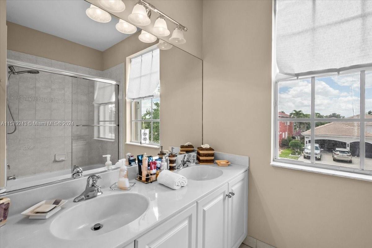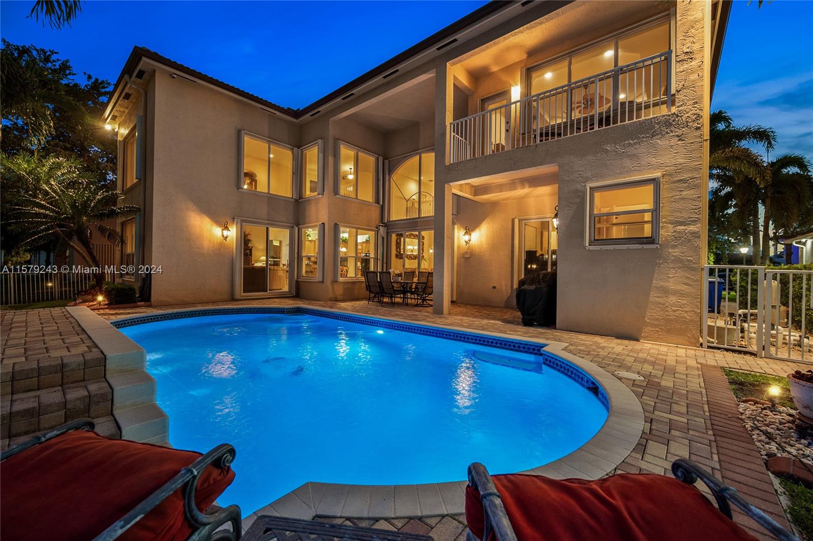 Introducing the coveted Catherine model—a captivating 4BR/3.5BA residence featuring a spacious loft and large office. Abundant natural light and a soaring 22-foot vaulted ceiling infuse modern elegance and functionality. The main level boasts two rooms, including a luxurious junior suite with its own cabana bath, alongside an additional office/bedroom. Culinary enthusiasts will appreciate the gourmet kitchen with sleek wooden cabinets and granite countertops, perfectly positioned for stunning backyard views. The loft offers versatility, easily transforming into a 6th bedroom if desired. Outside, enjoy the inviting pool and backyard with serene waterfront sunset views—an ideal setting for relaxation. Nestled in Sunset Lakes, your dream home awaits!
