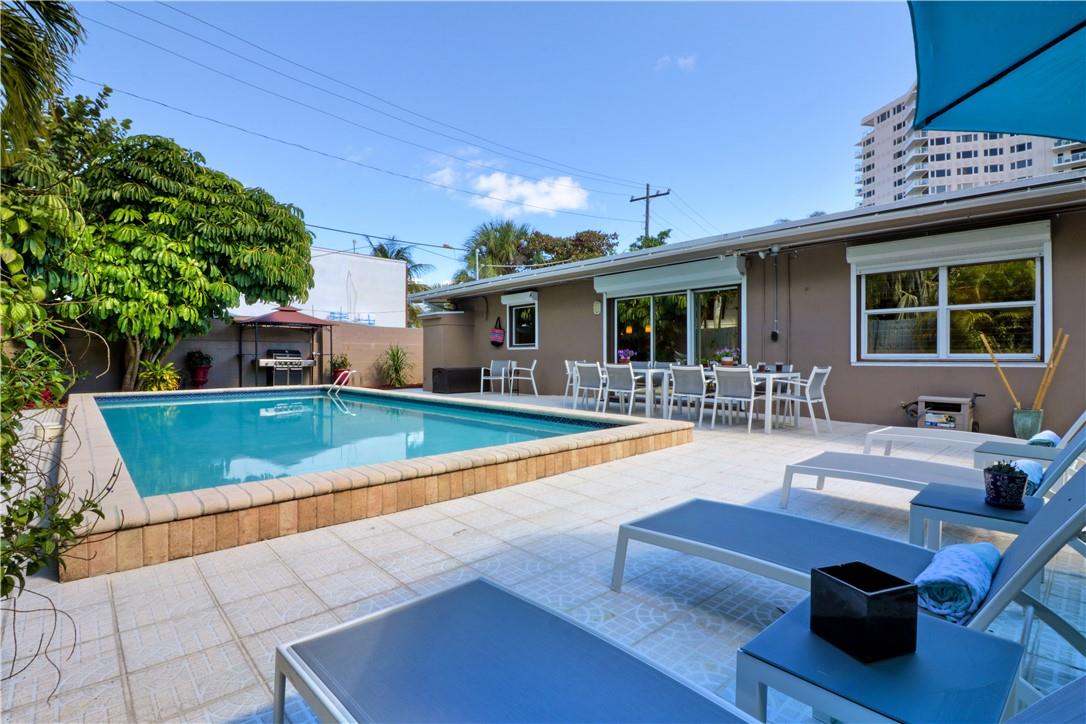 Accepting Back-Up Offers--True Ft Lauderdale Beach Home remodeled (including roof-2/2024). A 2 min walk to beach. Open area floor plan w/common areas & 3 of 4 bedrms w/pool view. Impact windows, Modern Shades, Lg Gazebo, Grill Area, whole house H2O filter & Heated, Saltwater Pool. Buyer's Inspect performed b4 bringing 2 mkt & all items fixed. Pristine Original FL Beach House (4 bed/3 ba) w/Substantial updates & remodel. Marinas 2 blks away; Walk to 35+ restaurants. Currently is a profitable Licensed ST (vaca) Rental. Pricing is not based on GRI or CAP Rates--priced as a single family home. Great 4 peeps looking 2 downsize, a Seasonal Home, Biz Travelers, or an Investment Prop. 10 Min from Ft. Lauderdale Airport; 10 min to Downtown Ft Ldl; 35-40 Mins to Miami or Boca. Confirm Measurements