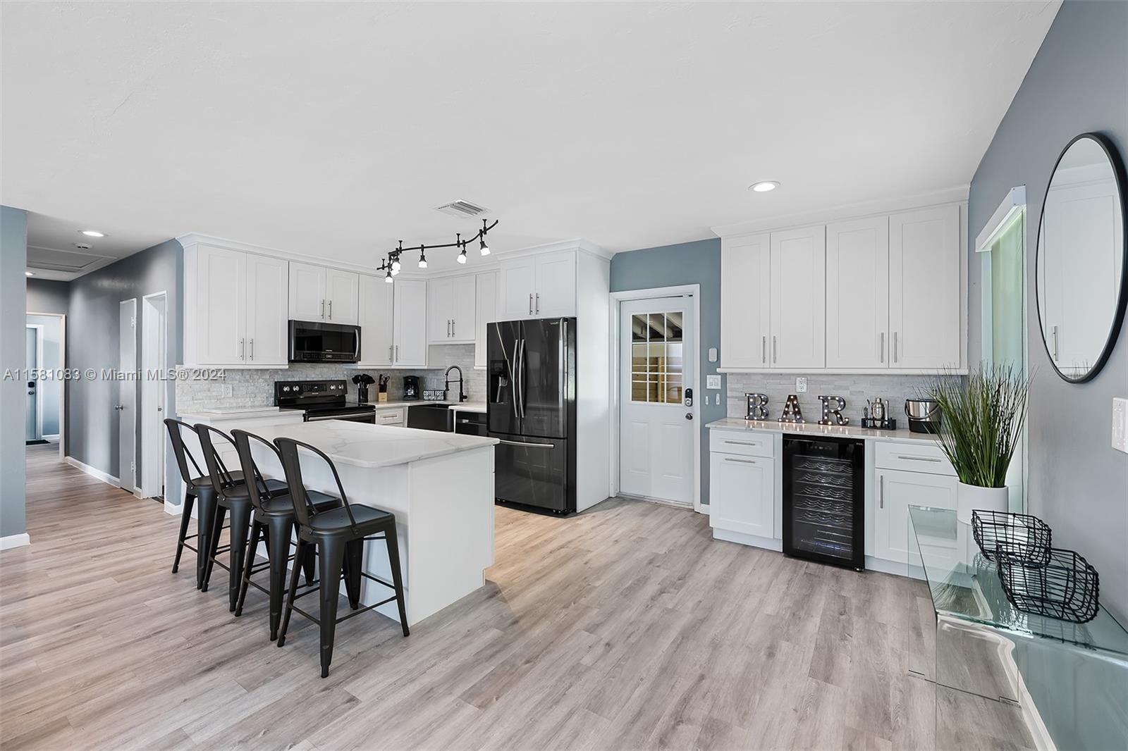 Immaculate home on a huge corner lot. Fully fenced with new landscaping and a new sprinkler system. Completely redone all throughout including flooring, paint, impact windows, kitchen & baths. Roof was replaced in 2024! The home also features new pool heater (2021) & new AC (2022). Perfect for full/part time residence or for vacation rental. The home has been an extremely successful vacation rental since May 2021 while being kept in perfect condition. The back yard has a large, beautiful pool that was just refinished in May 2023, including new diamond bright, tiles, decking, and 1400 SQFT of travertine tile. 3 separate areas have been designed for sun, shade, barbecue, dining, seating and games. Perfect for friends and family to relax and enjoy this gorgeous Florida sunshine!