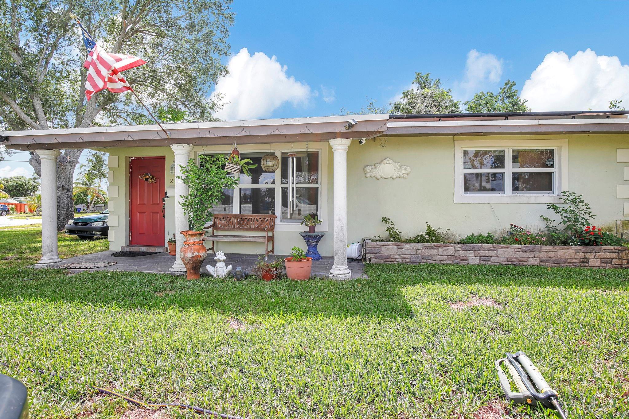 Charming corner lot with great size yard. This home has the land to expand with great land space, beautiful fruit trees, and more! Add on additional space or put in a pool! Home has impact windows and doors, interior well-appointed for immediate use. Great location for restaurants, shopping, and commuting. Roof and solar panels just a couple of years old, however roof has leak. Showings conclude 5/11/24