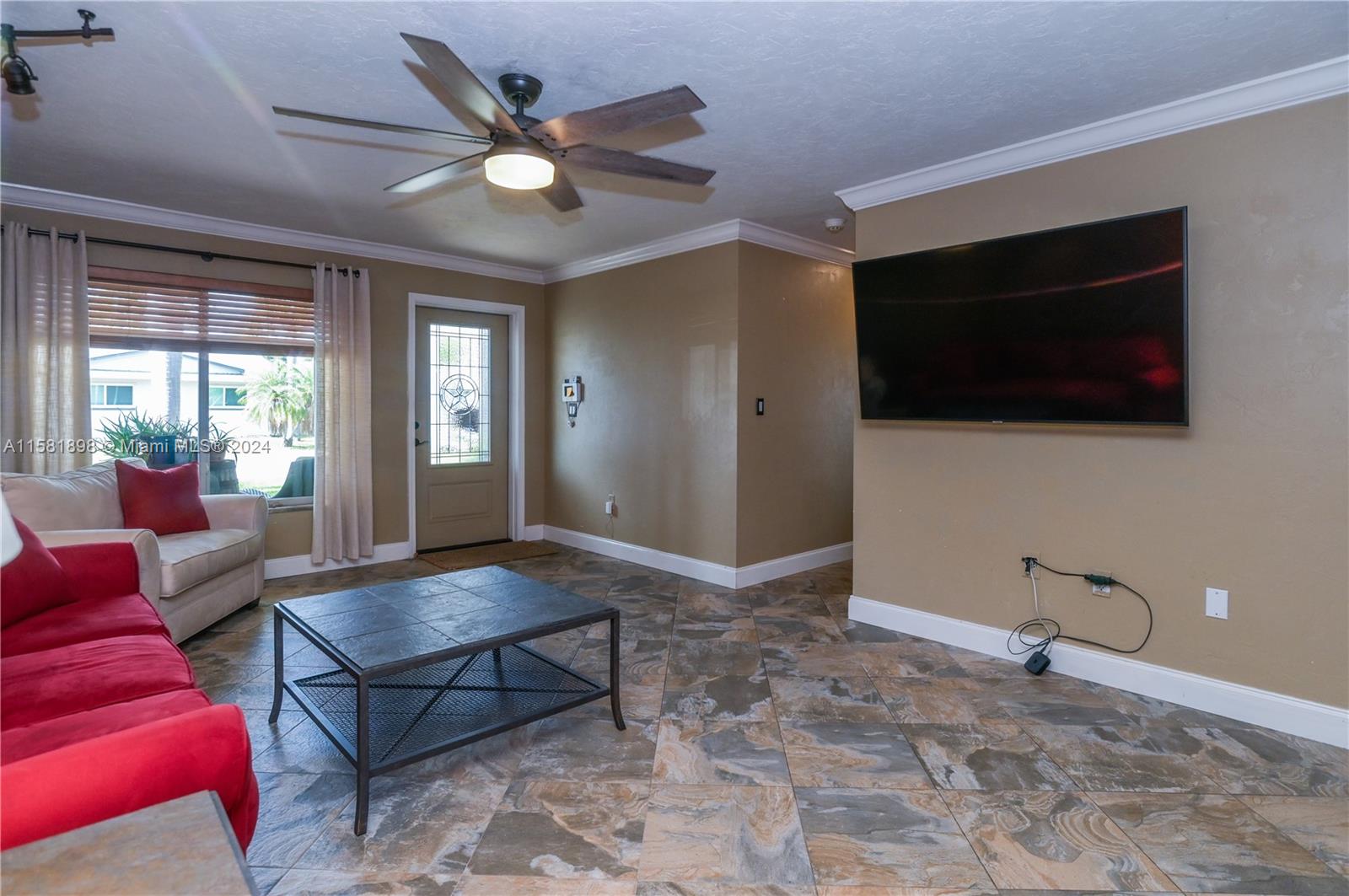 Come See This Beautiful 4 BEDROOMS 2 BATH W/Additional SPACIOUS ENCLOSED BONUS ROOM & Covered Screened In Patio. Relax Overlooking Your Gorgeous Pool & Fenced In Private Back Yard. Large Yard Offers Plenty Of Space For Outdoor Entertaining. Beautiful Porcelain Tile Flooring From Spain In Your Main Living Areas. Kitchen Has Custom Millwork, Custom Cabinetry W/Granite Countertops & Stainless Steel Appliances. Large Kitchen Island Perfect For Entertaining!!! Spacious Dinning room with Plenty Of Room For All Your Family Gatherings. IMPACT WINDOWS & DOORS. Renovated Baths. Crown Molding & Baseboards. Flat Roof Replaced (2022). ENJOY THE SOUTH FLORIDA INDOOR/OUTDOOR LIFESTYLE. Home Centrally Located & Just Minutes To Calvary Chapel, Schools, Roadways, Stores & Restaurants. A MUST SEE!!