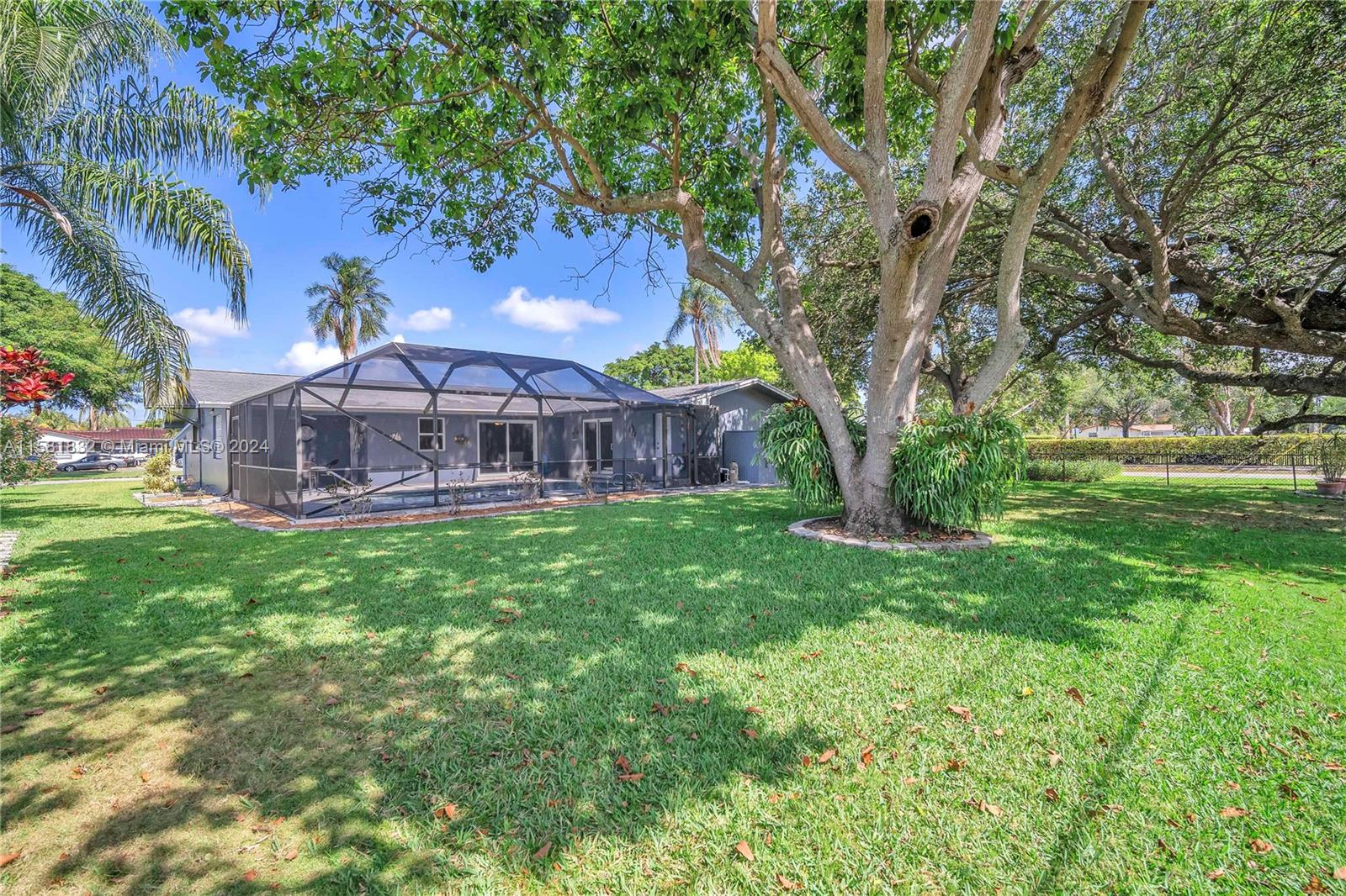 Tropical paradise! Extensively remodeled 3 BR, 2 full bath pool hm, spectacular 10,794 sq ft fenced corner lot. Enjoy fully screened covered patio, pool, gorgeous grass backyard, shade trees, huge avocado tree, numerous tropical plantings. Iimpact windows, doors, 2011 roof. 2017 eat-in kitchen, stainless steel appliances, granite counters, wood cabinetry. Remodeled primary suite, double sliding impact glass doors as private pool entrance, 2017 updated bathrm. One car garage, big circular paver driveway, all the parking you could want. 2019 American Standard package A/C, 2018 water heater, 2017 electric, 2024 exterior paint. Awesome location, walk to schools, Memorial Hospital childcare, Memorial/DiMagio Hospital complex, minutes to beach, Hard Rock Casino, Airport, much more. No HOA fees!