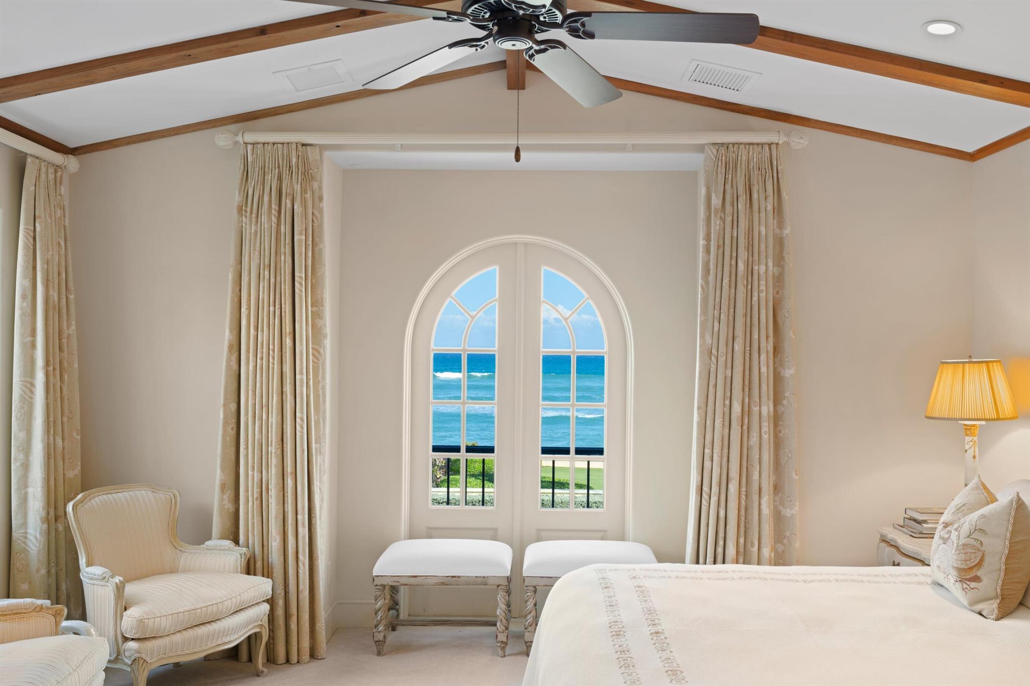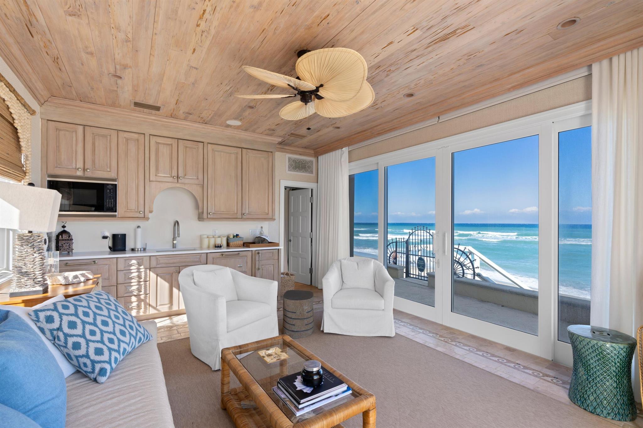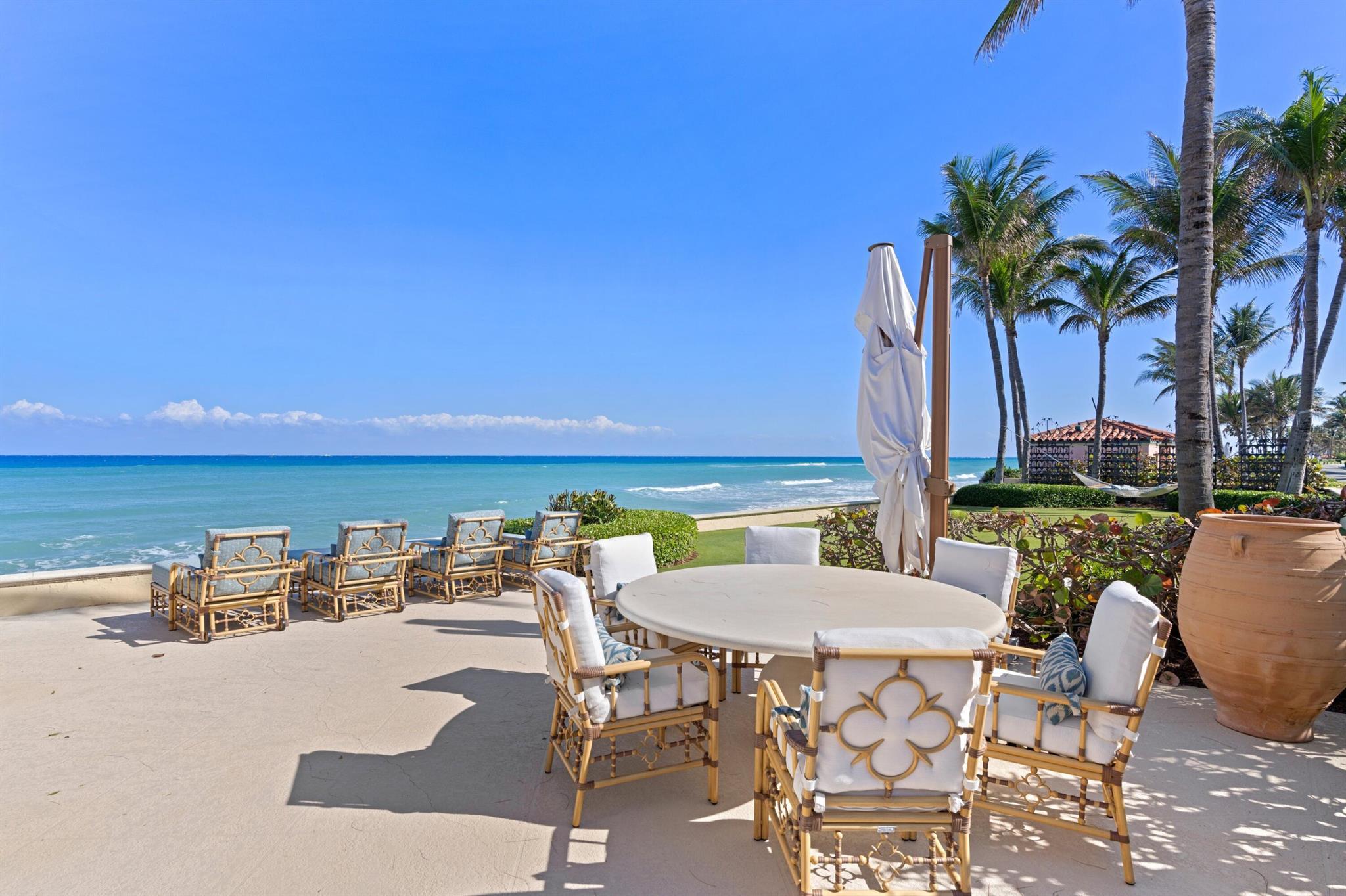 Beautiful Ocean Front home that has been lovingly cared for with exquisite details of the highest finishes. This 5 bedroom, 6 bath, 2 half bath home features a formal living room, formal dining room, eat in kitchen with 2 powder rooms, a family room with wet bar and powder room. Down the long-vaulted ceiling hallway across the back of the home there is another wet bar, a formal living room and formal dining room. The kitchen features a Wolf stove, two Miele dishwashers, Sub Zero refrigerator, a Fisher Pykel refrigerator drawer, a laundry room and pantry and the second powder room up the grand staircase to the second floor where there is a large Master Bedroom with incredible ocean views and a large bath with dual closets and sinks, water closet, a soaking tub and large shower: SEE MORE