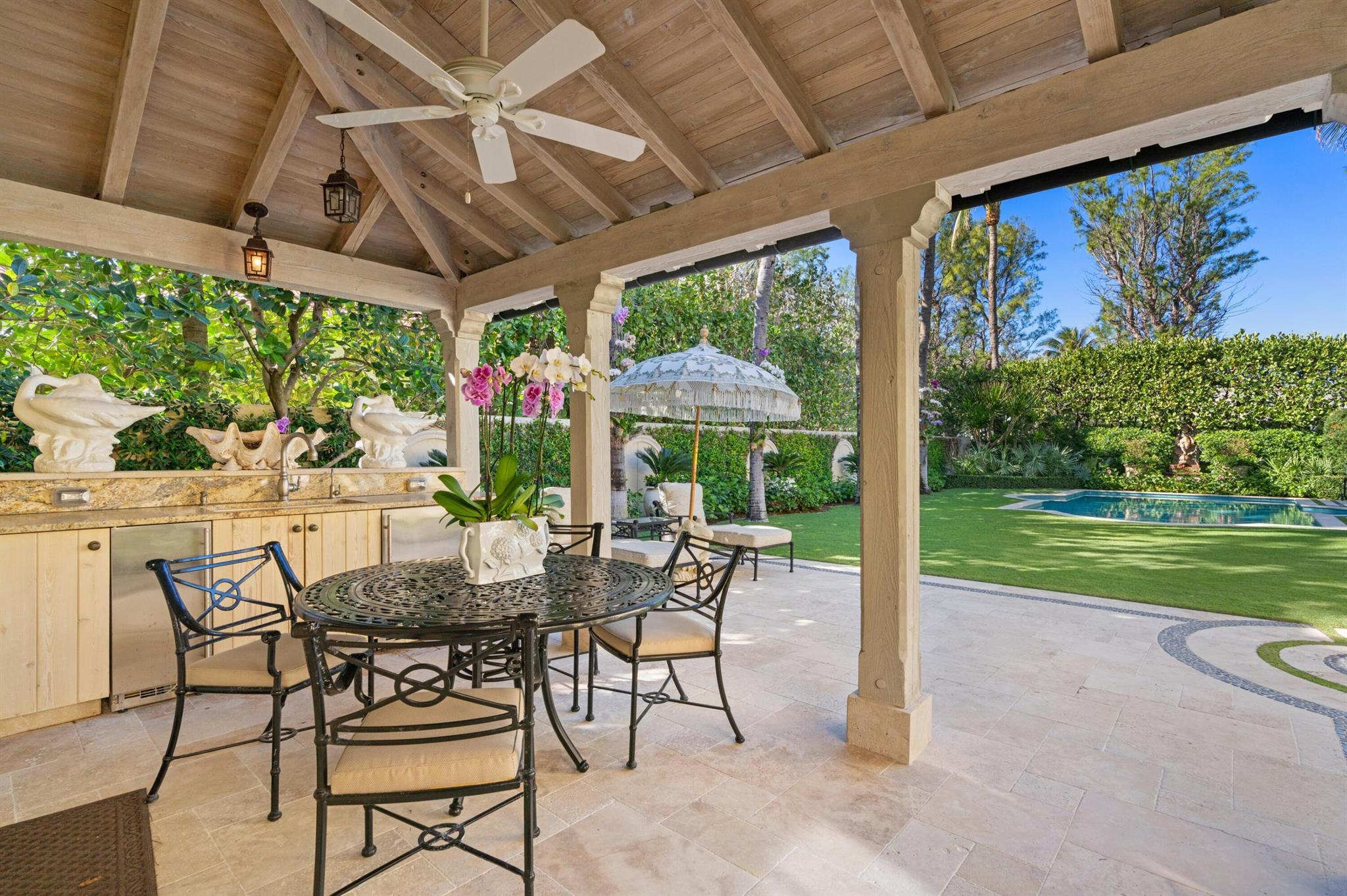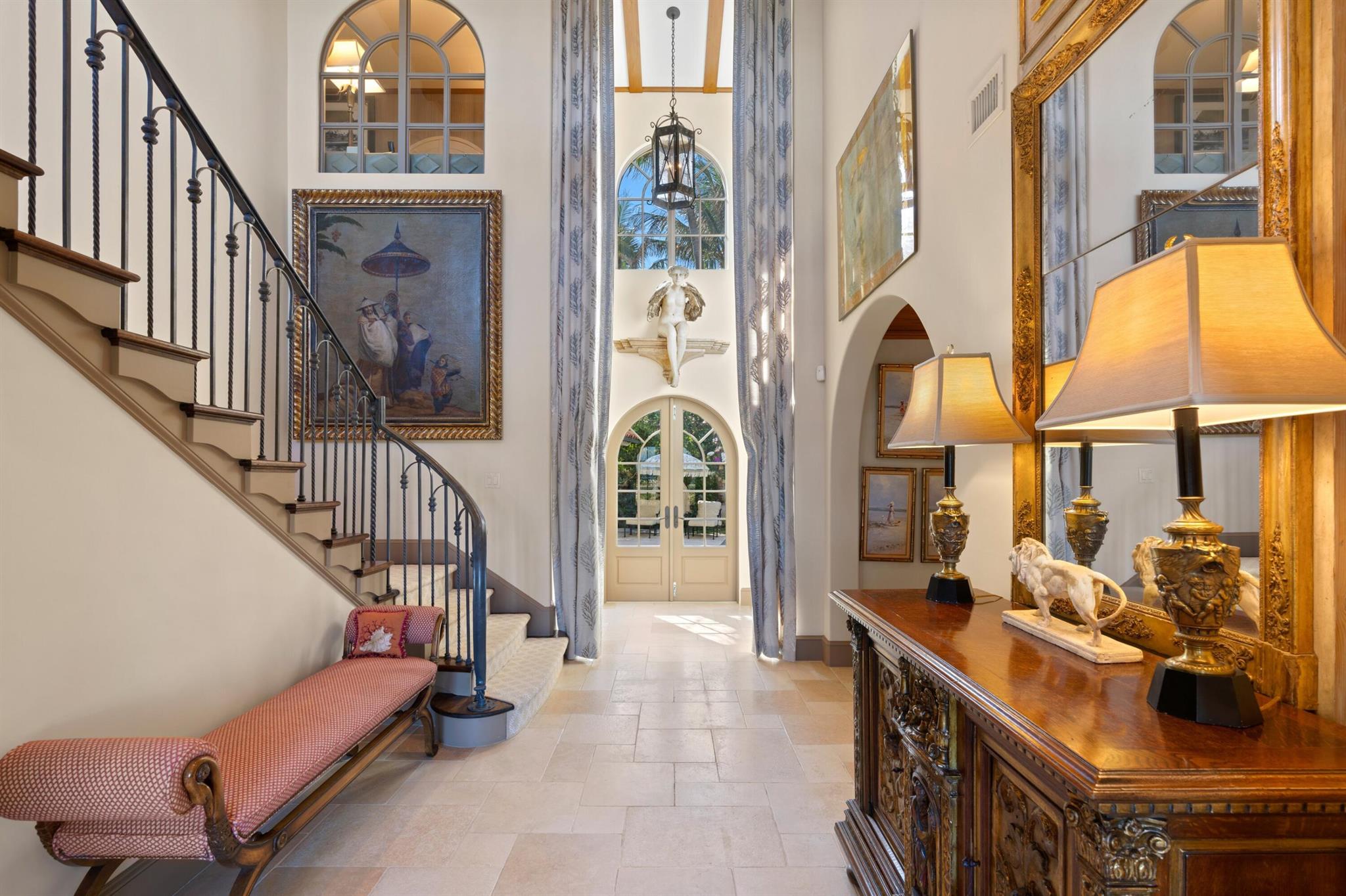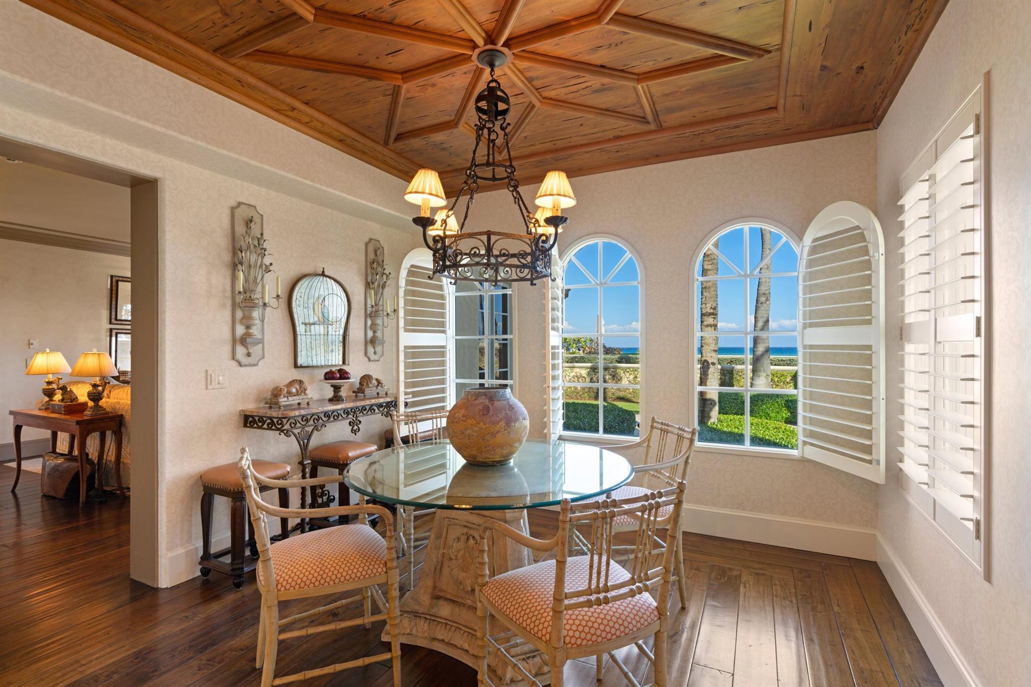 Beautiful Ocean Front home that has been lovingly cared for with exquisite details of the highest finishes. This 5 bedroom, 6 bath, 2 half bath home features a formal living room, formal dining room, eat in kitchen with 2 powder rooms, a family room with wet bar and powder room. Down the long-vaulted ceiling hallway across the back of the home there is another wet bar, a formal living room and formal dining room. The kitchen features a Wolf stove, two Miele dishwashers, Sub Zero refrigerator, a Fisher Pykel refrigerator drawer, a laundry room and pantry and the second powder room up the grand staircase to the second floor where there is a large Master Bedroom with incredible ocean views and a large bath with dual closets and sinks, water closet, a soaking tub and large shower: SEE MORE