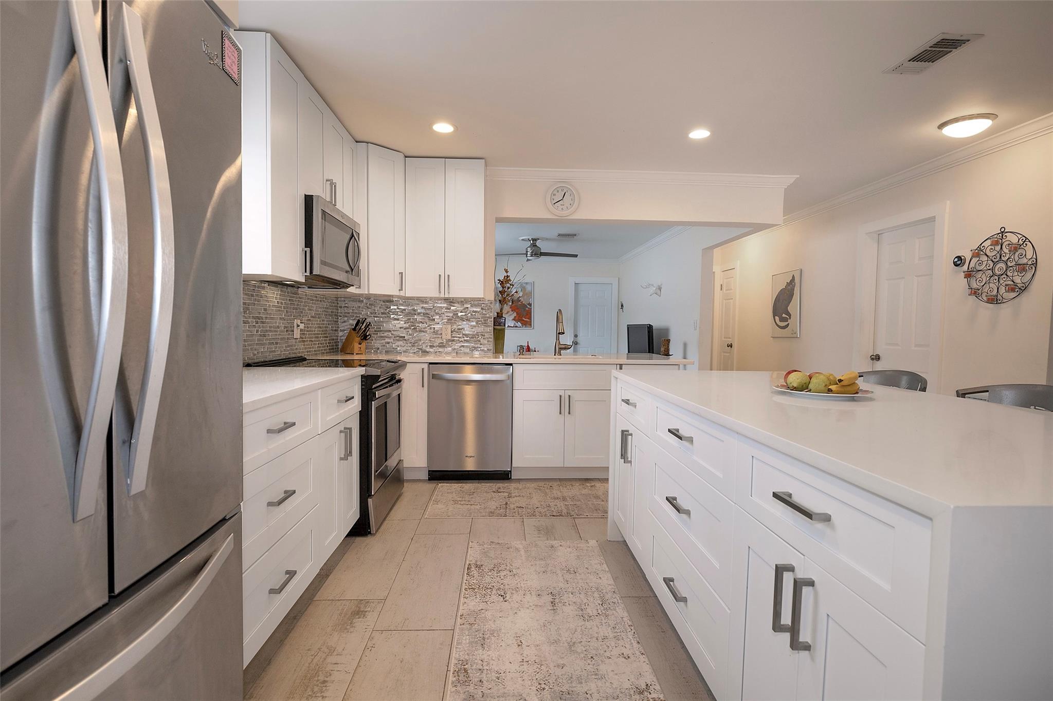 Step inside this charming mid-century home in the heart of Hollywood Lakes! This stunningly renovated home boasts an abundance of natural light, highlighting its open concept layout, perfect for modern living and entertaining. At the heart of the home lies the gourmet kitchen, featuring a waterfall island, stainless steel appliances, quartz countertops, and a beautiful glass tile backsplash. The split bedroom floor plan ensures privacy and comfort, complemented by renovated bathrooms. Outside, discover a fenced yard, offering generous space for a pool. With a one-car garage and impact windows, convenience and peace of mind are seamlessly woven into this home. Situated on one of the best streets in Hollywood Lakes, enjoy easy access to the beach, downtown, airport, and places of worship.