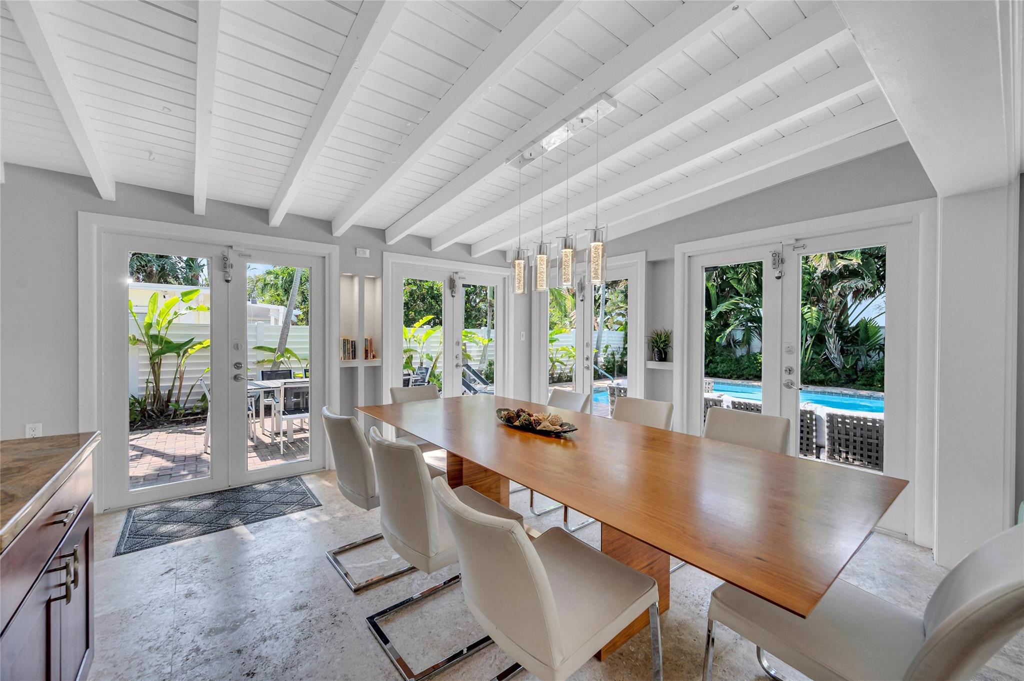 Nestled between Fort Lauderdale Beach and Hugh Taylor Birch State Park, this spacious home captures the essence of year-round beach living. Its open layout fills the rooms with natural light, featuring a large chef's kitchen, a stunning dining area overlooking the pool with newer landscaping. The bedrooms are generously sized, with ocean views from the primary suite. Just steps from Fort Lauderdale's famous beach, this property is a successful vacation rental, offering a great investment opportunity when not utilized for personal enjoyment. It's conveniently close to all the city's attractions, including beaches, parks, restaurants, groceries, shops, and the airport. A rare gem near the beach with 2-car garage.