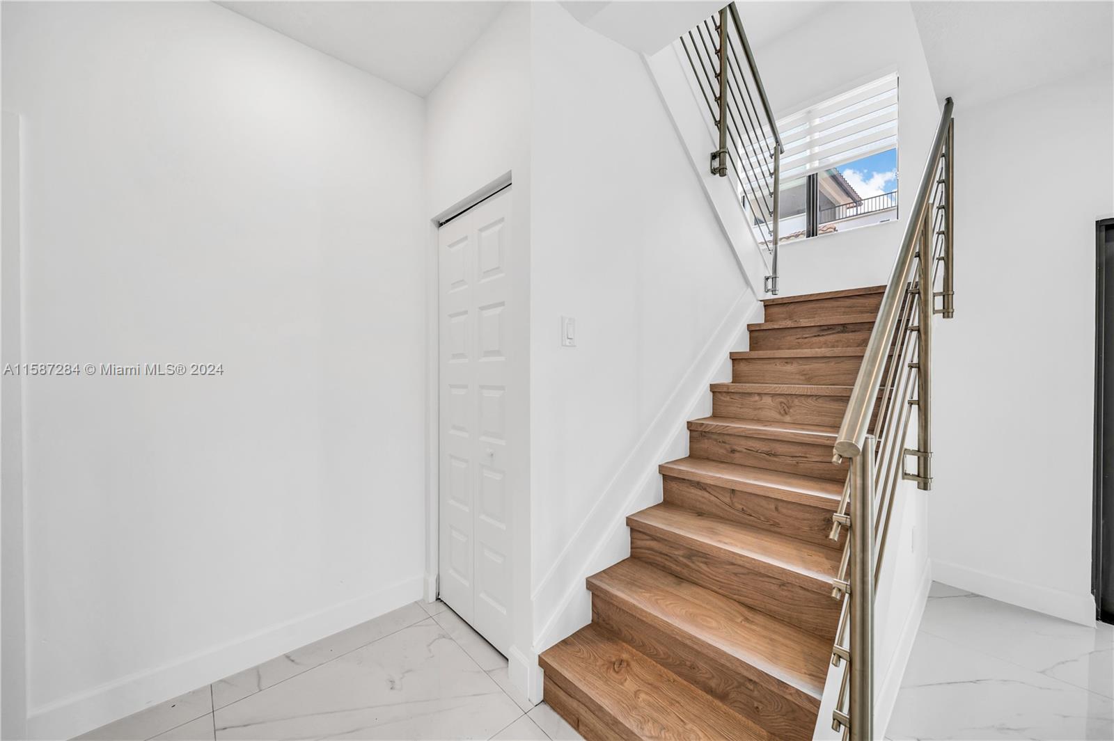 Welcome to this stunning 3-level townhome in the beautiful Urbana community of downtown Doral! Step into the inviting open-concept main floor with sleek floors, quartz countertops, stainless steel appliances, and abundant natural light. Plus, enjoy the convenience of a two-car garage. Upstairs, discover 3 spacious bedrooms, each with its own bathroom and custom-built closets. The third floor is an entertainer's dream, featuring a summer kitchen, and terrace. Freshly painted throughout and vacant ready for you to call this immaculate property home! Enjoy the convenience of downtown Doral living, resort style amenities and access to A+ schools. Please use showing assist to schedule.