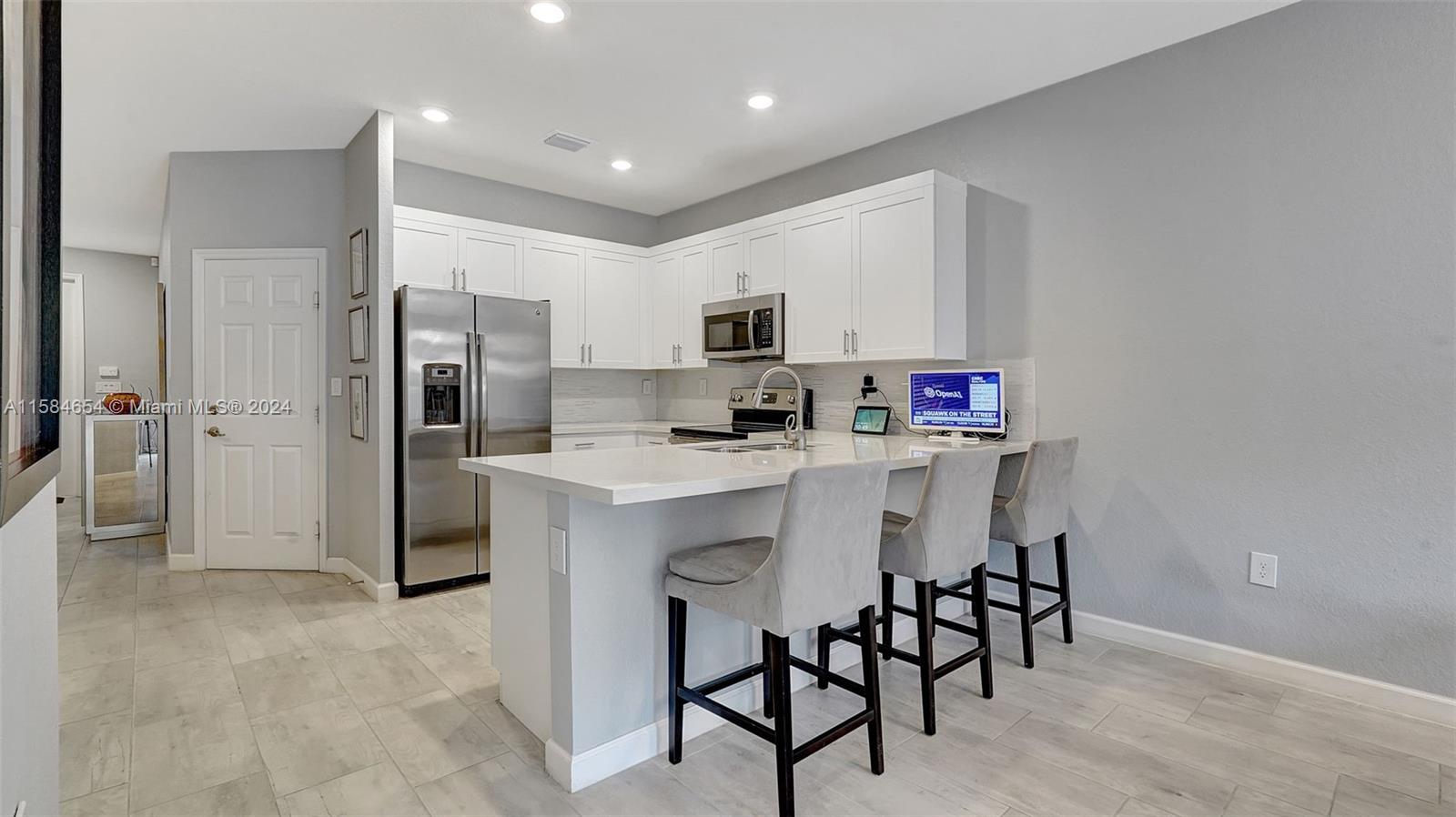 Stunning 3 bed 3 full bath townhome, 1 car garage in gated Magnolia Trails! Built in 2018 - Every upgrade imaginable! Open kitchen w/ wood cabinetry & molding, SS appliances, Quartz countertops & upgraded backsplash. Rectified tile downstairs & Mohawk pet & stain resistant carpet with upgraded padding upstairs (installed 2023). Primary bath has custom cabinets & drawers. Quartz countertops & upgraded hardware in all baths. Closets completely customized w/ built ins! Master closet is customized with built in drawers, valet hooks, hanging rack and movable shelving to fit your desired needs. High end, lighted ceiling fans in the office, guest bedroom, bathrooms & family room. Private, fenced in backyard w/ pavers. Smart home w/ Ring alarm system. Accordion hurricane shutters. Community pool!