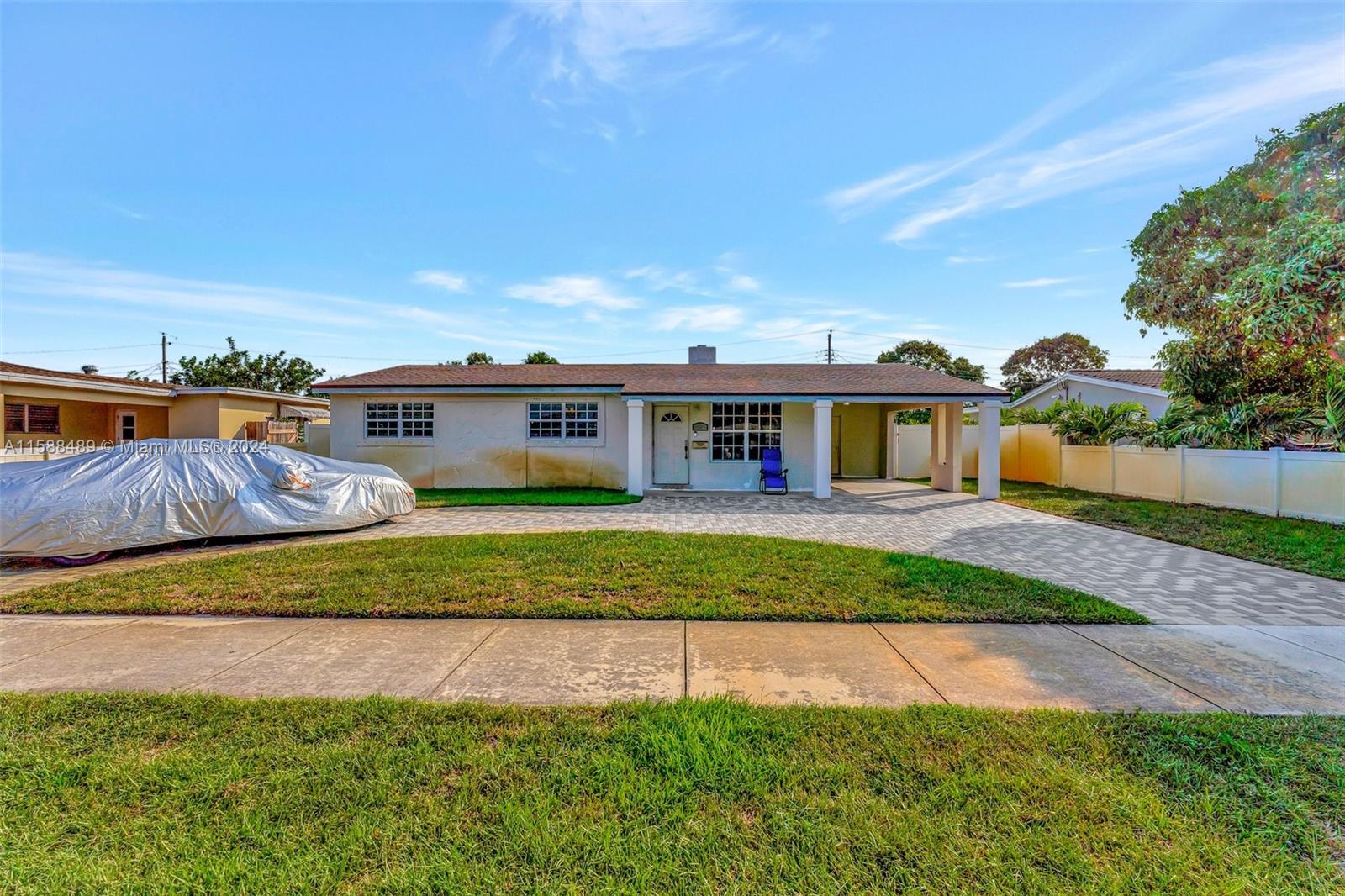 Discover your dream home in this vibrant and spacious true 3-bedroom, 2-bathroom gem! Step inside to find a newly renovated kitchen, a stunning Florida room, and an updated guest bathroom. The master bedroom boasts a legally permitted addition with its own exterior entrance, perfect for an office or nursery. Enjoy cozy evenings by the working fireplace, and appreciate the convenience of a circular driveway and covered carport. Outside, the expansive backyard offers ample space for a pool. Plus, with a newer roof, this home is ready for you to move in and start making memories!