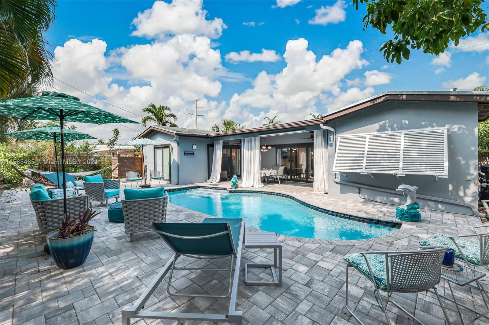 This magnificent 4 bedroom, 2 bathroom home offers an unparalleled opportunity for homeowners and investors. Enjoy the beautiful heated pool and spacious covered patio, perfect for entertaining and relaxing. The home features spacious living areas with natural light and an open concept kitchen with modern appliances. Primary suite offers a peaceful retreat with pool access, while three additional bedrooms provide flexibility for guests, family, or a home office. Located in the desirable Imperial Point neighborhood of Fort Lauderdale, this property holds significant potential for rental income. Investors take note: With its prime location and luxurious amenities, this home presents a lucrative rental opportunity. Schedule your showing by calling realtor for details.