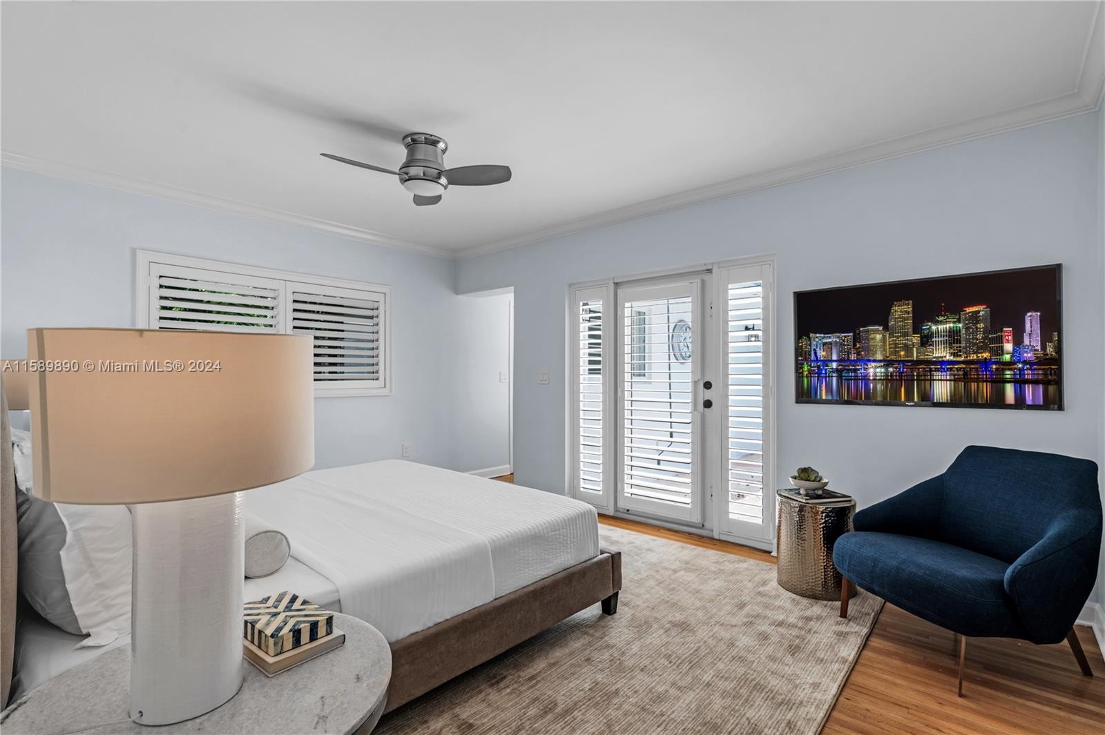 Located on a lovely tree lined street, this home invites you to enjoy a blend of formality and functionality. Formal foyer entry, large living and dining rooms with views of the pool and patio. Beautifully finished hardwood floors throughout the living areas and bedrooms. Well-designed open kitchen with granite counters, white wood cabinetry, and kitchen Aid appliances opens to the oversized family room with access to the pool and terrace. Each of the spacious bedrooms offers beautifully built-out closets. The primary bedroom has two large built-out closets, updated bathroom and shower. A second bedroom has newly updated bath-en-suite. New roof, insulated & air-conditioned 2 car garage, impact windows & doors and security system all enhance this very special Coral Gables home.