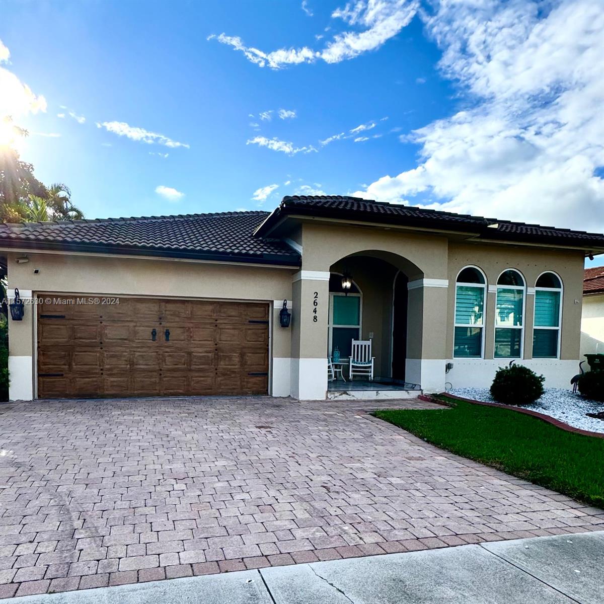 BACK ON THE MARKET AFTER UPDATES. This charming home offers classic comfort & modern updates. The backyard patio has been completely redone with a new patio floor, providing a fresh, inviting space perfect for outdoor gatherings or quiet relaxation. The garage has been freshly painted, adding a polished touch to the walls and floor. This property has a 1 year-old roof, impact windows & doors, new plantation shutters, new tile flooring, new AC unit & new water heater. The kitchen is 3 years old, the same as the appliances. This house features a split floor plan with the master bedroom en-suite on one side & the rest of the bedrooms on the other. This is a 2-car garage home in a 24-hour gated, serene community that enjoys the convenience of nearby schools, parks, supermarkets & hospitals.