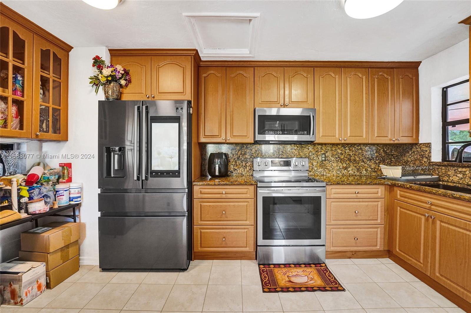 LOCATION!!! LOCATION!!! LOCATION!!! Amazing curb appeal in the highly sought after Hallandale beach area. Just 10 -15 minutes from the luxurious beach, Aventura mall, Fort Lauderdale and Miami Airports and I95. New exterior and Interior paint. Brand new Luxury Vinyl throughout. Brand new 3.5 ton AC unit. Luxury oversized Samsung refrigerator with TV. Garage converted into 4th bedroom. Outdoor area is perfect for entertaining and there is plenty of room for a pool. Toilet seats are heated in both bathrooms and there is plenty of closet space. Couch, loveseat, dining table, 2 patio sets and 2 beds included with the sale.