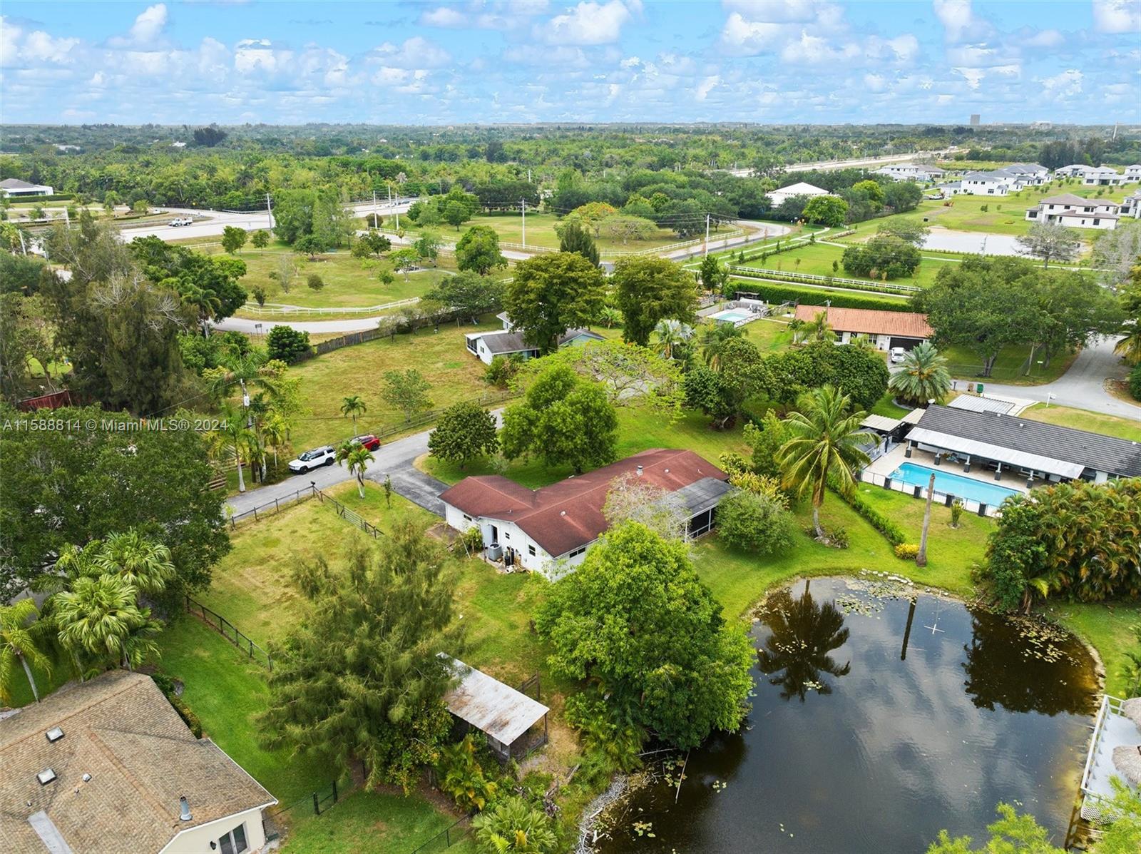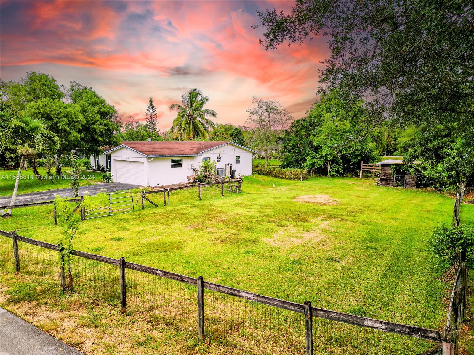 Stunning lakefront property on a builder's acre lot! This 4/2 home features 136 ft of water frontage & offers over 1,800 sqft of living space. The home boasts category-5 rated impact windows, a water filtration system, a well, a completely renovated bathroom, an open kitchen layout with new stainless-steel appliances, & freshly repainted interiors. The primary bed is renovated with updated floors & moldings, illuminated by contemporary lighting, a spacious bath & a walk-in closet. One of the highlights of this property is its beautiful, screened patio, providing an additional 360 sqft of outdoor living space to unwind & watch the sunset. The home also has a variety of fruit trees. On the south side is a large fenced-in paddock with a small stable connected to electricity & running water.