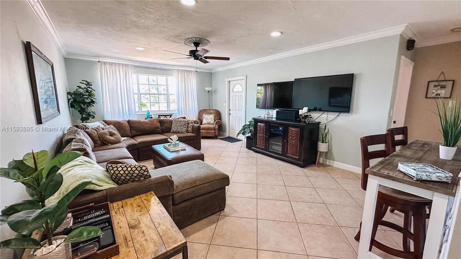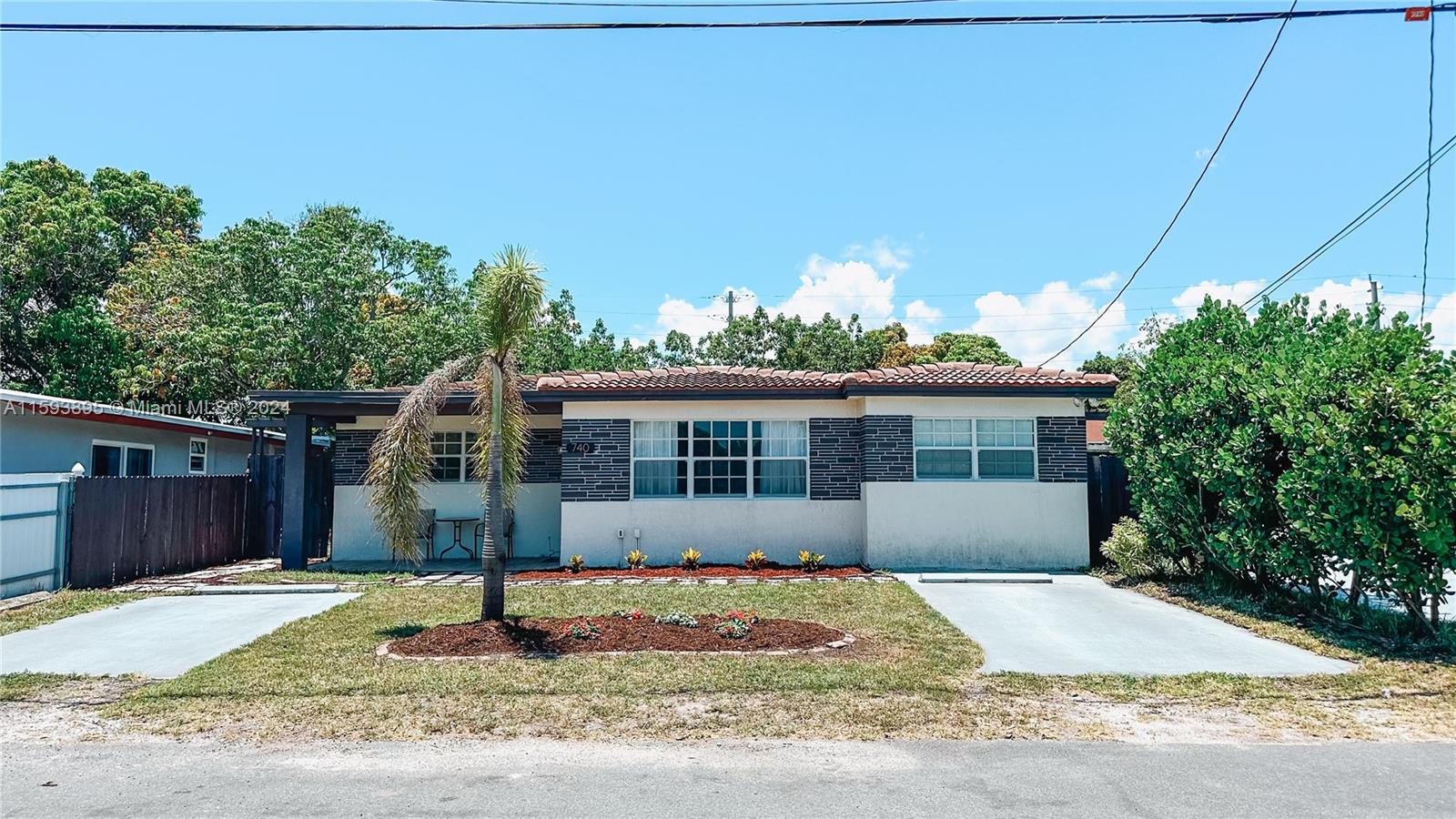 Move right into this spacious, light and bright 3 bedroom, 2 bath single family home in the heart of Hallandale Beach. Desirable split bedroom floorplan with a seperate ensuite, which can easily be used as an in-law quarter with a seperate entrence and kitchenette. Home features a remodeled eat-in kitchen with stainless appliances, seperate utility room with washer and dryer, a fenced-in tropical backyard with gazebo, outside kitchen and tile flooring through-out. You will be delighted by the attractive curb appeal and new landscaping upon entering this home.