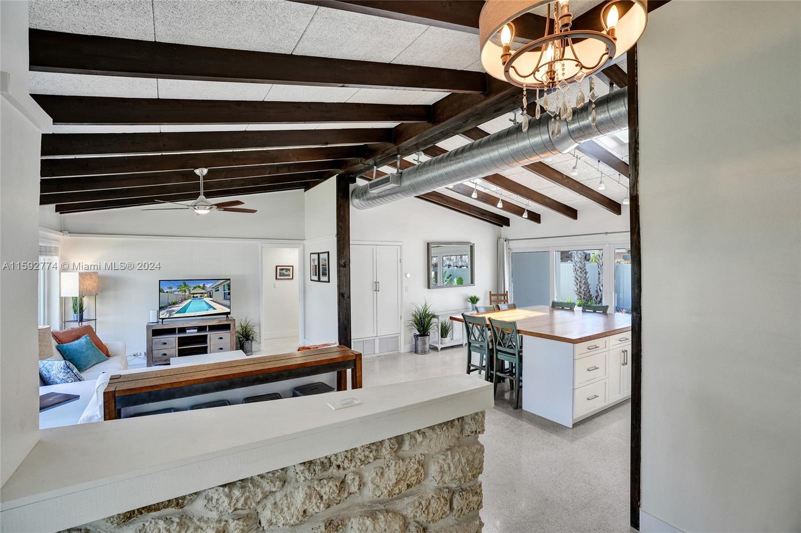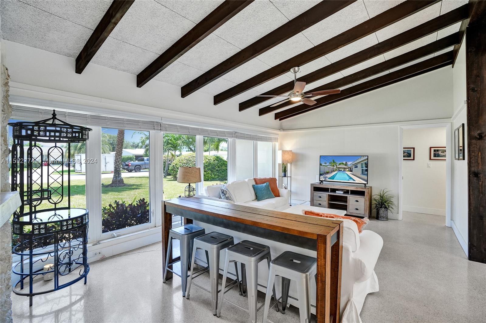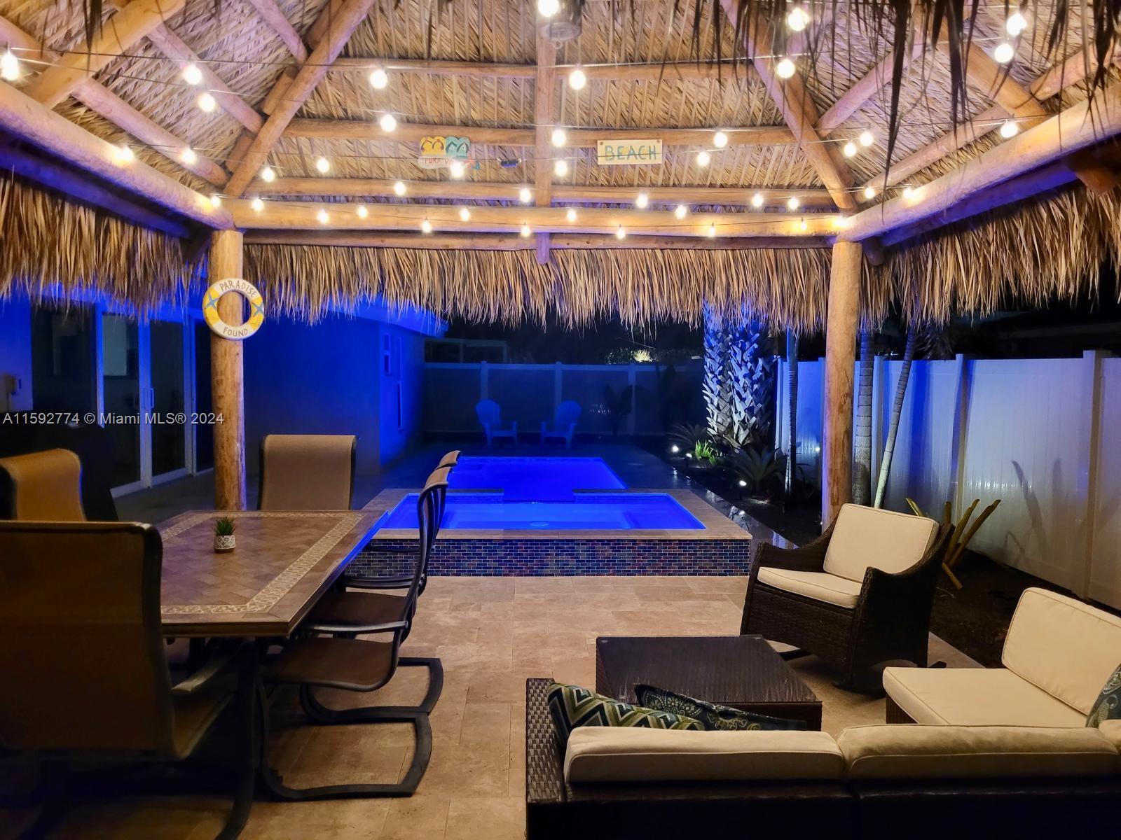 Welcome home to this beautifully appointed mid-century pool-home in desirable Cypress Point! Offering 3 bedrooms in an open & bright split floor plan. The list of features abounds, over $150k in upgrades! Bask in the summer sun in your new heated saltwater pool w/spa, sun shelf, new travertine deck, tiki hut & new landscaping. Chef's kitchen w S/S appliances, custom cabinets, quartz counters & an oversized dining island. Enjoy the peace of mind of a '17 roof & WH, '22 AC & impact windows/doors. Stunning curb appeal, extra-long custom driveway & large carport, extra outdoor storage closet & shed, new PVC fence & sprinklers, ring cameras, acoustic & insulating ceiling tiles & more! Turn-key furnished negotiable! Blocks away from new entertainment hotspot of Pompano pier & the beach! NO HOA!