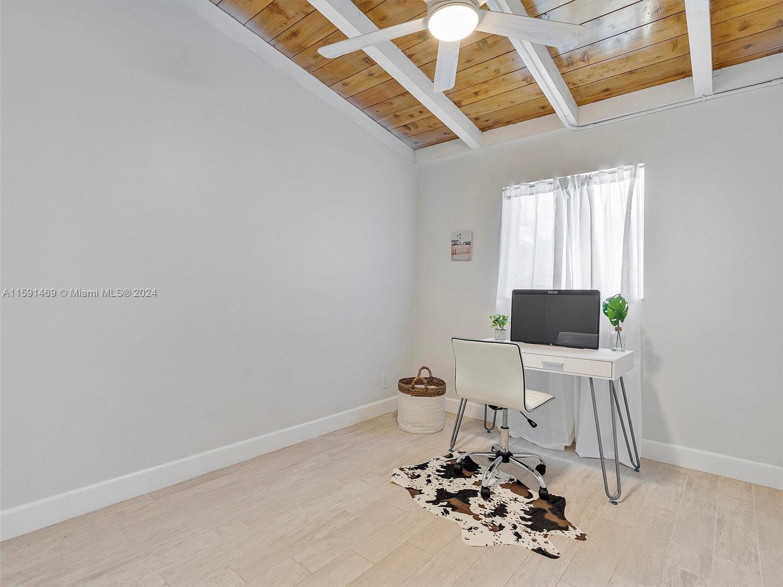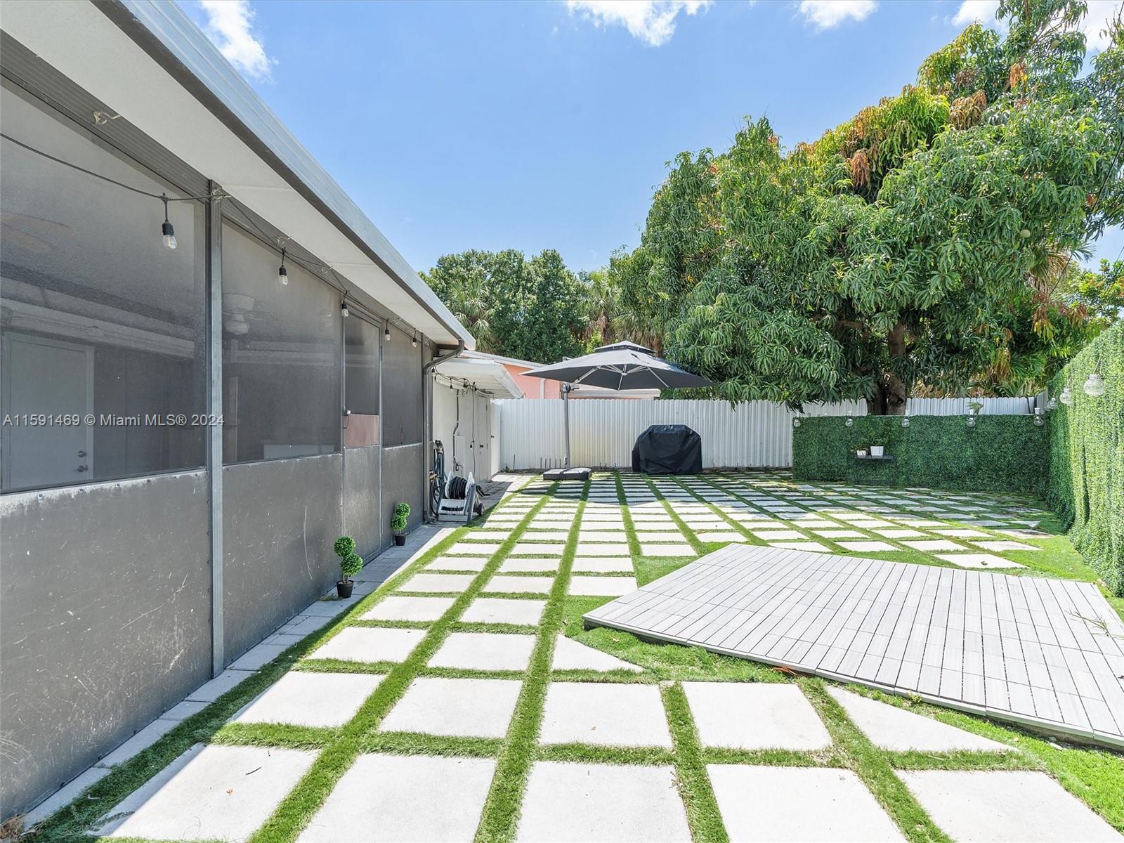 Stunning renovated single-family with pool and no HOA in oversized lot! Nestled in the sought-after Riverland neighborhood. Home features wood-beamed vaulted ceilings, modern open kitchen w/ quartz countertops, stainless steel appliances and wood look tile throughout. Primary bedroom with extra-large walking closet. Guest bathroom with oversized soaking tub. 4th bedroom is an in-law quarter, with full bathroom, could be also used as office or rental income because of the independent entrance. Large screened porch and fully fenced backyard divided, one area with brand new heated saltwater pool and the other area with pavers and turf, perfect to entertain guests. Driveway fits 7 cars. Impact windows and doors. Close to downtown, Las Olas Blvd, the beach, restaurants, bars, and major highways