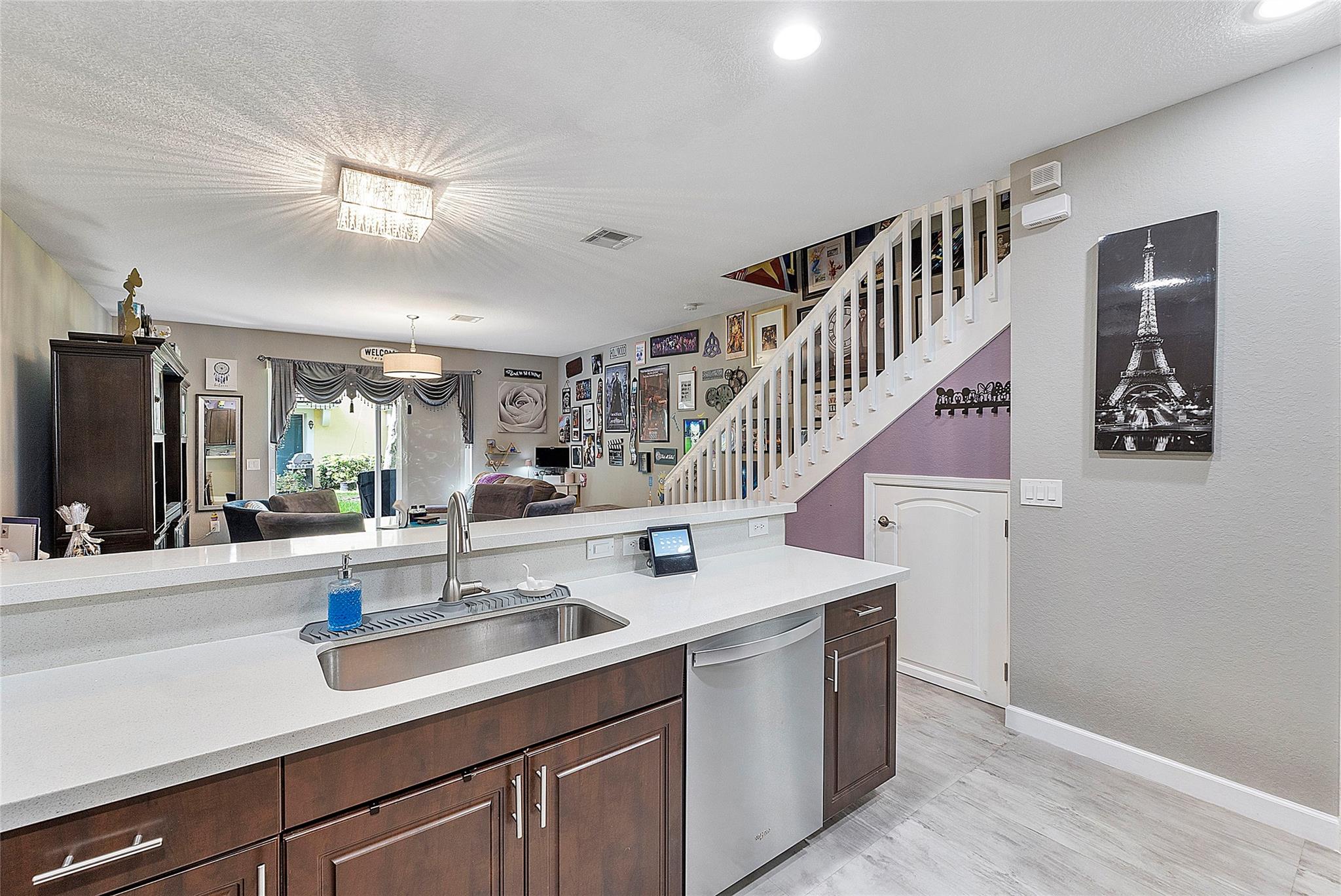 This stunning 2-bedroom, 2.5-bathroom 1-car garage townhome in the highly sought-after Davie, Florida! Home Features: Updated kitchen w/ quarts counters, contemporary backsplash & stainless-steel appliances, Hurricane Impact Windows & Doors, waterproof luxury vinyl floors on 1st floor, upgraded master bath! Primary bedroom is a tranquil retreat w/ en-suite bathroom offering a luxurious walk-in shower. Huge walk-in closets in both bedrooms & full-size washer & dryer on second floor. This meticulously well-maintained home offers lots of natural light & NEW AC 2023. Complete w/ Security System, electronic door lock, doorbell camera & two cameras. Located w/ close proximity to community pool & playground. Conveniently located near dining, shopping, & Fort Lauderdale International Airport.