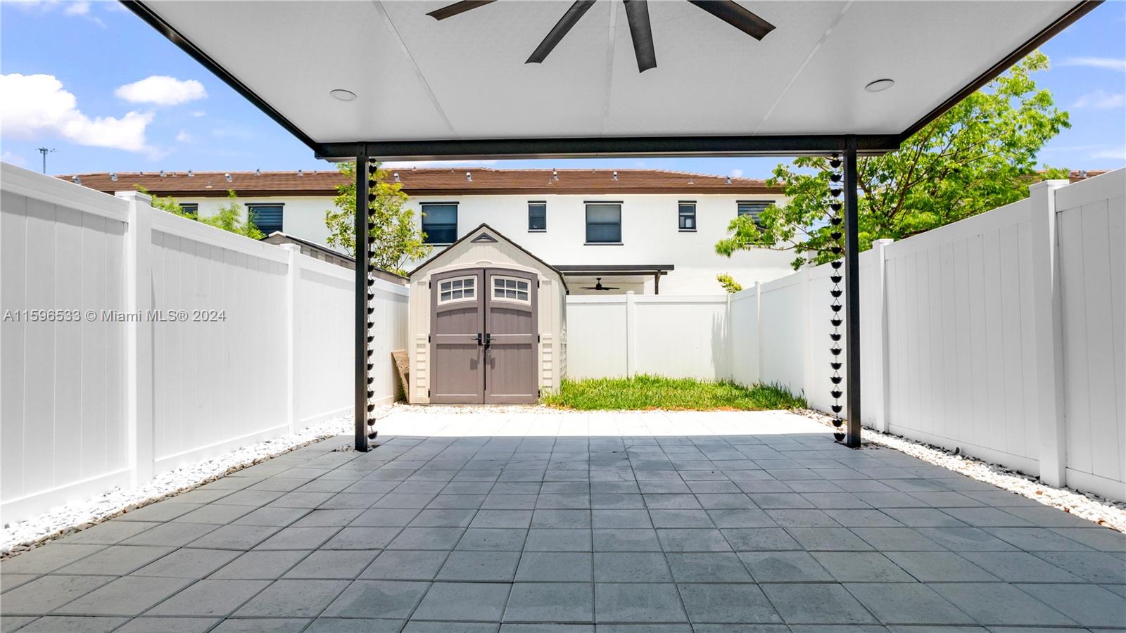 Welcome to this exquisite townhouse featuring 3 bedrooms, 2.5 bathrooms, and a host of upgrades designed to enhance your living experience. Remodeled kitchen boasts modern flair with matching bathroom countertops, creating a cohesive aesthetic throughout. Exterior of the home features a spacious pergola and some green space to relax and entertain in style. Large living areas throughout along with tiled floors and waterproof laminate floors on the second floor. Zebra blinds for every window and neutral paint job in the interior. Beautiful and grand gated entrance, 24 hr security, 2 large clubhouses that offer resort style living, large clubhouses available for rent and even 2 large gyms to stay fit in. 2 assigned parking spaces and plenty of guest parking. Close to everything. Act Now!