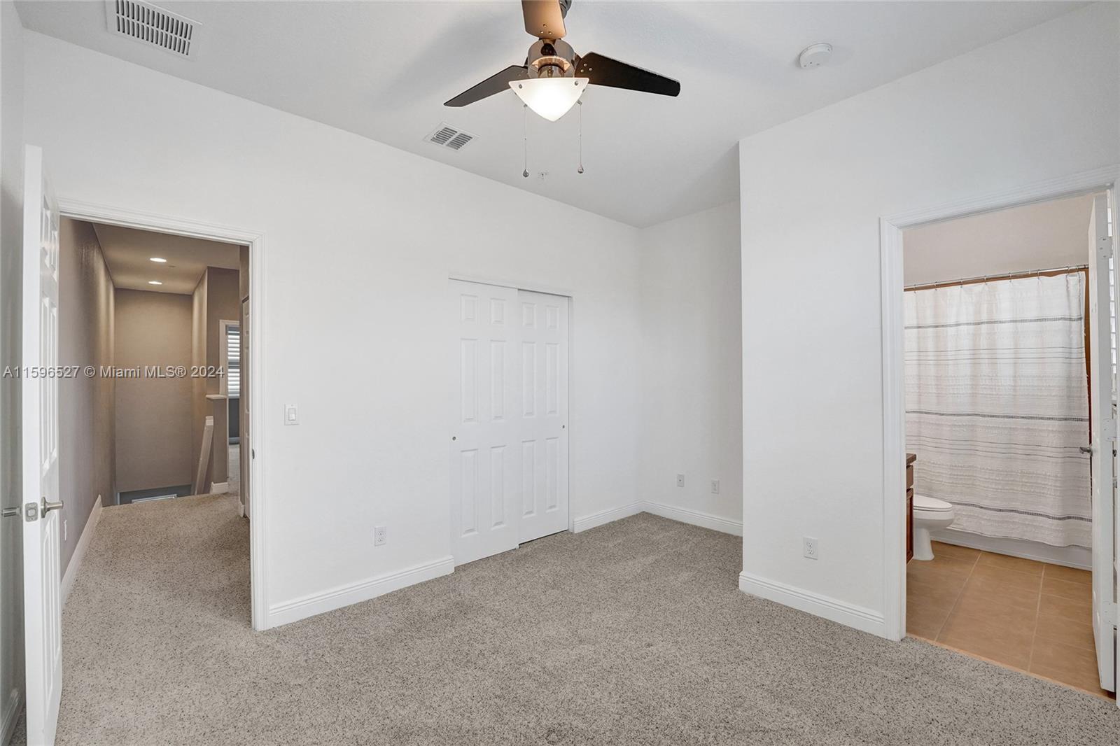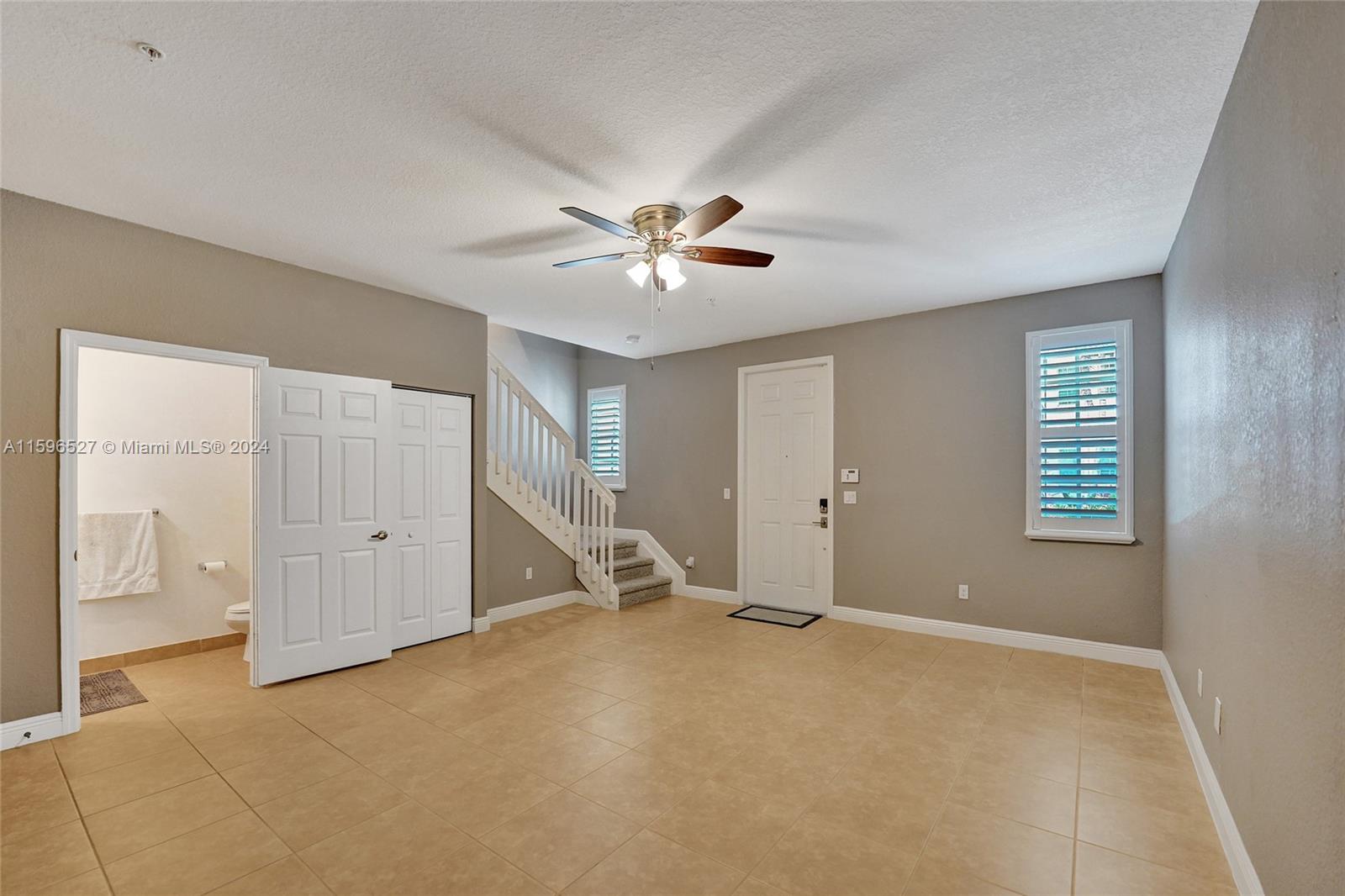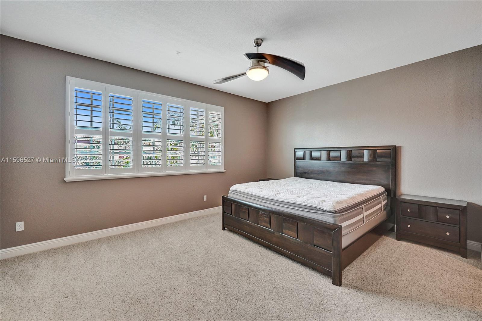 This well-maintained tri-level townhouse offers modern living with a spacious layout. The first floor includes a large living area, half bath, and a 2-car garage. The second level features a family room, dining area, open kitchen, bedroom, full bath, and private balcony. On the third floor, you'll find a spacious master bedroom and a third ensuite bedroom, providing privacy and comfort. Additional features include impact windows and doors, plantation shutters, custom closets, upgraded carpet, in-unit laundry, and direct garage access. Located near shopping, dining, parks, and major highways with a low HOA (Incl: Cable, Internet, Gated Community) this townhouse is the perfect urban retreat. Must see!