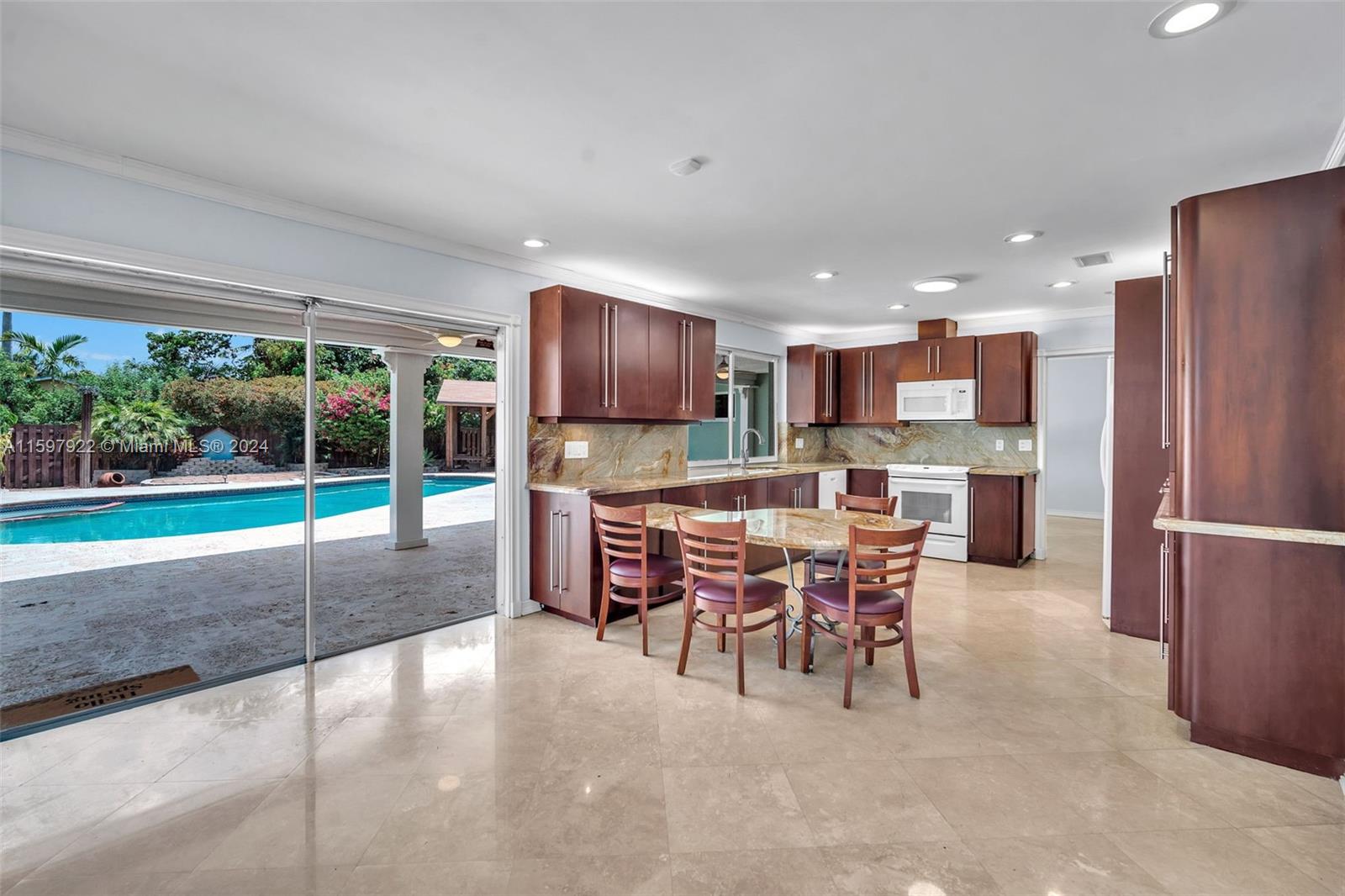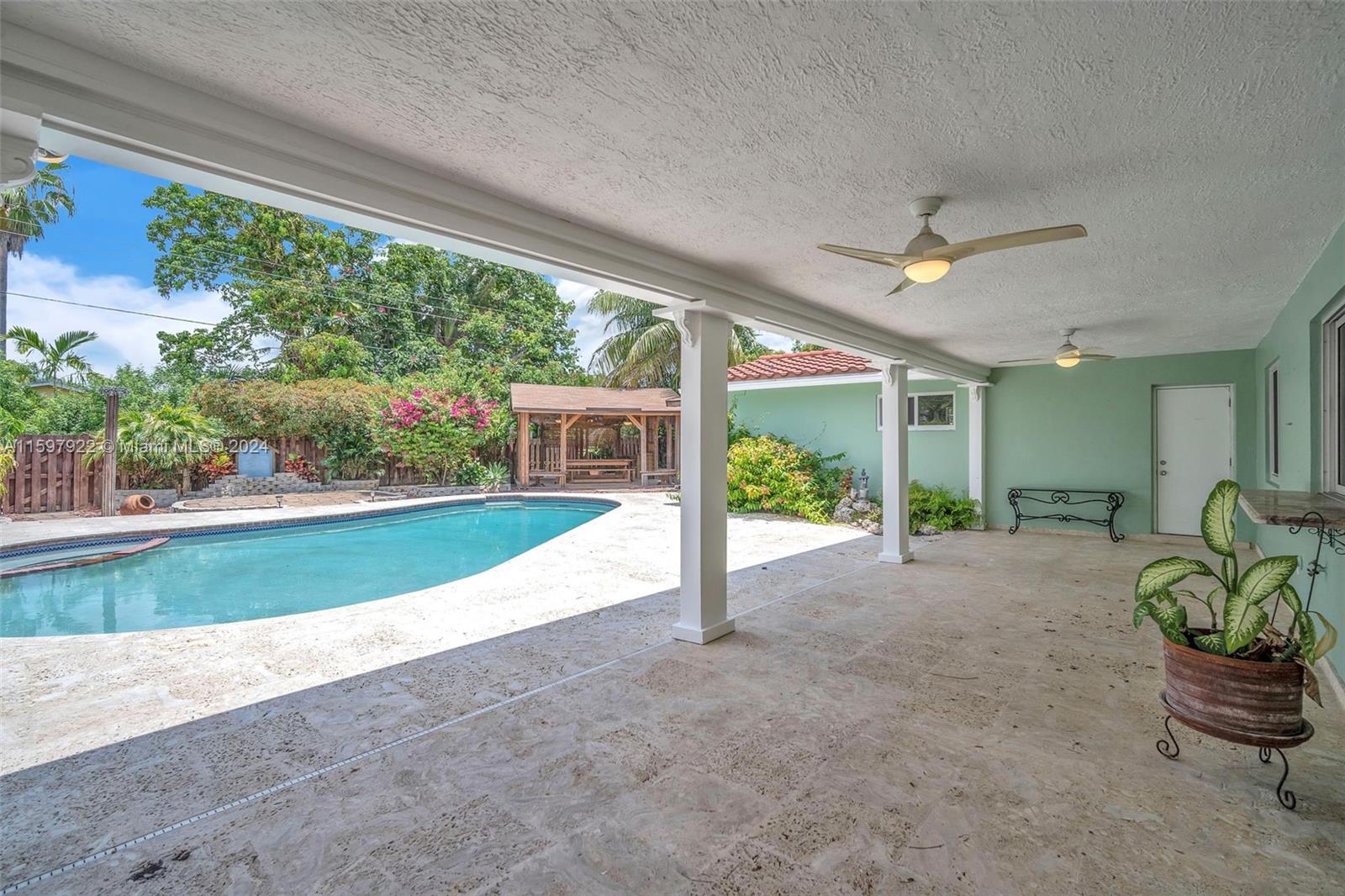 Step into your Hollywood Hills dream home, a stunning residence with captivating curb appeal and luxurious features at every turn. As you enter, you'll be greeted by a spacious living area adorned with elegant marble floors and soft recessed lighting, creating an inviting atmosphere that is perfect for hosting and entertaining. Additionally, this home is equipped with impact windows, making it storm-ready. Step outside and experience Florida living with manicured landscaping, a natural stone paver deck, and a resort-style pool area. The poolside oasis is complete with a charming gazebo featuring carefully placed lighting and an outdoor kitchen exhaust, providing the ideal space for outdoor gatherings and relaxation. Don’t let this opportunity slip by to own this truly breathtaking retreat!