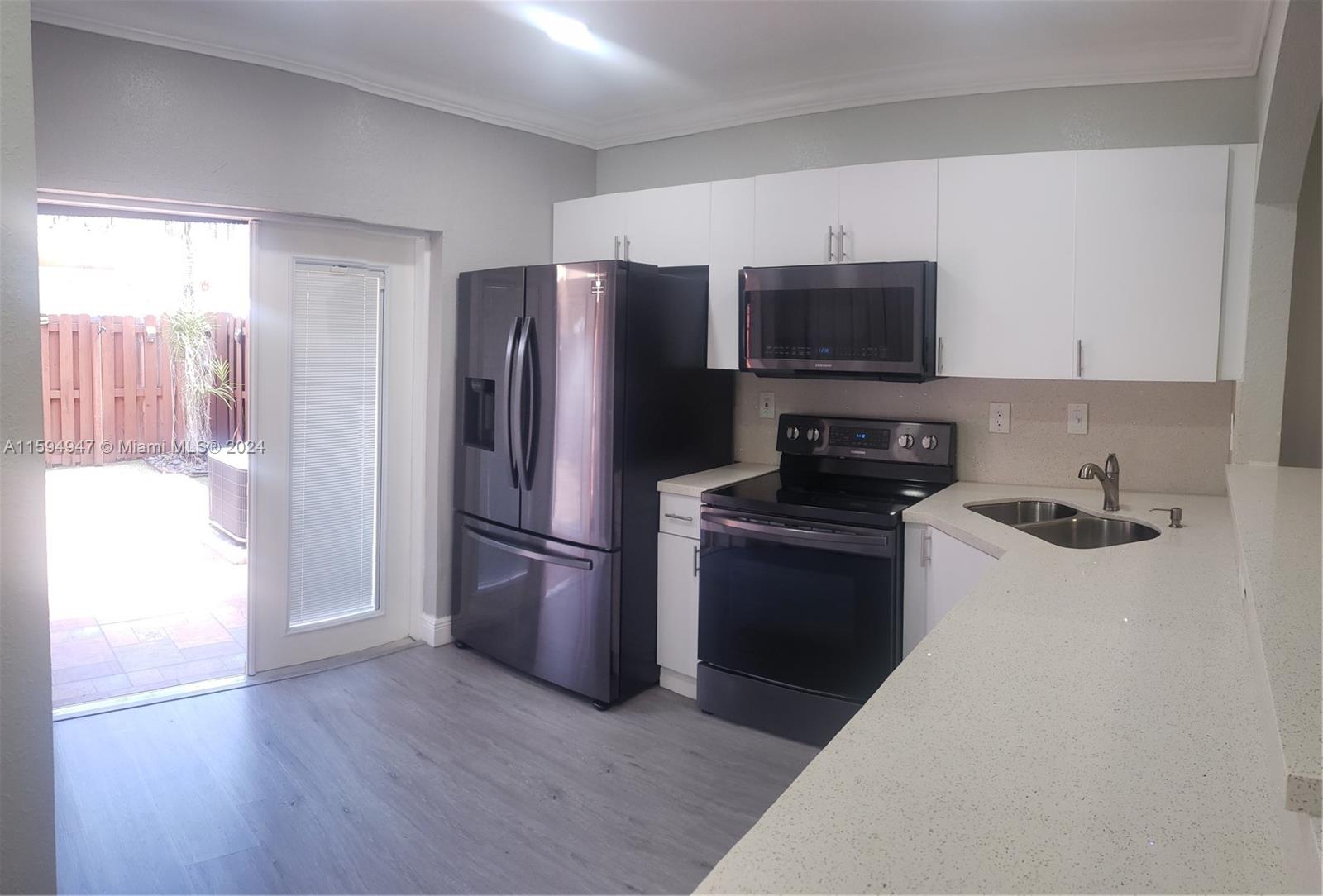 Excellent Opportunity to own a centrally located Townhome Completely Remodeled in 2022 featuring 3 Bedrooms, 2 Full Baths & 1 Half Bath. Den converted into convenient downstairs bedroom. 2021 NEW Roof, 2022 Updated Kitchen with White Cabinetry, Quartz Countertop & Backsplash & 2022 NEW Stainless Steel Appliances. NEW Laminated Water Resistant Wood Flooring throughout. Remodeled Bathrooms with Porcelain Tiles for Bathroom Floor & Wall Tiles , 2020 HVAC, 2023 Titan Tankless Water Heater, 2021 Electrical Panel, 2022 Washer/Dryer inside unit, Garbage Disposal. Two assigned parking spaces + Guest Parking. Hurricane Panels. Low Monthly Association Fee of $174.35. Great location, near Palmetto Expressway, Palmetto Hospital, within walking distance to Strip Shopping Centers & nearby good schools !
