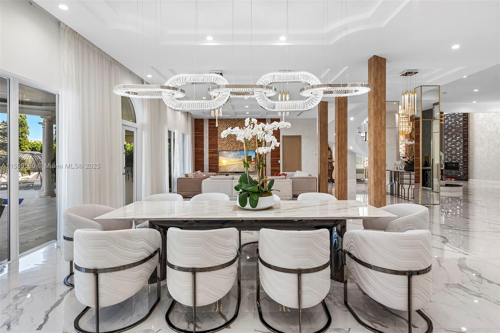 Welcome to a new-age castle in Golden Beach, a newly built custom waterfront masterpiece. This home boasts massive ceilings and a well-thought-out design with handpicked European materials and finishes. Enjoy 100 feet of private water frontage, no fixed bridges, and easy ocean access. This smart home includes an extra generator and is an entertainer's dream with open spaces featuring 13-foot ceilings, a chef's kitchen, home theater, game room, living room fireplace, built-in patio barbecue, and custom saltwater pool with jacuzzi. The primary bedroom offers a balcony, dual walk-in closets and bathrooms, and an office space. Guest bedrooms feature walk-in closets, balconies, and en-suite bathrooms. Fully furnished with Fendi, Bentley, and Visionnaire furniture.