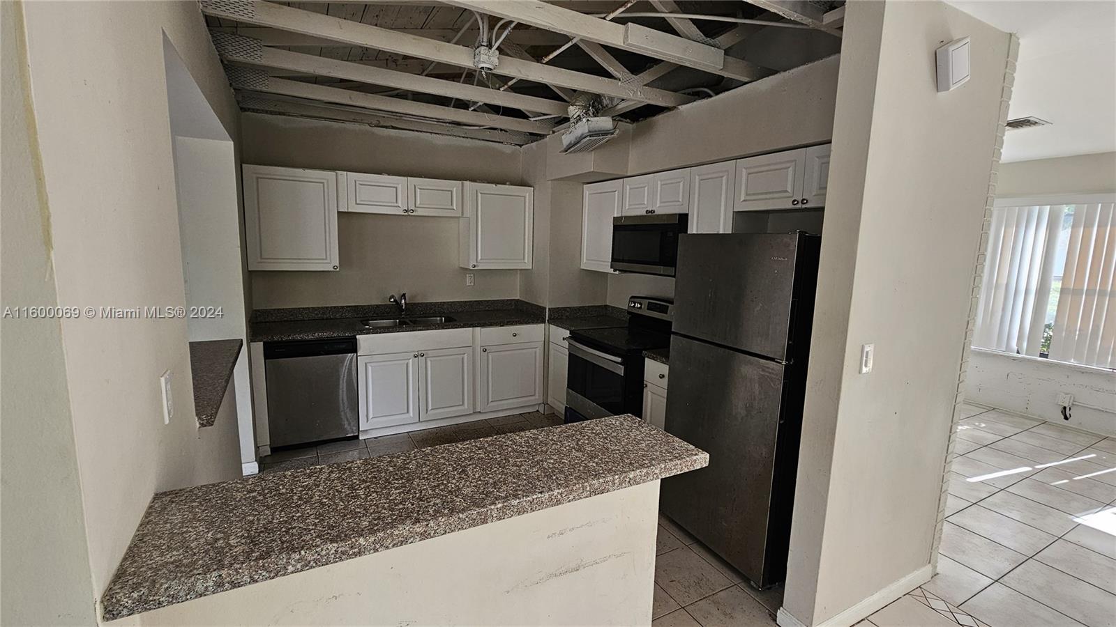 Amazing opportunity! Spacious 3 bedroom and 2 bathroom Miramar Home. Brand NEW Roof in 2024! Updated kitchen cabinets, granite counters and stainless steel appliances. Large living room, dining area and family room. Split floor plan. Completely tiled. Laundry room and utility closet. Huge backyard patio area ideal for entertaining. Plenty of room for a swimming pool or future home addition. One car attached carport. Circular driveway. Plenty of space to park a large RV or boat. Centrally located inside a quiet neighborhood with a high pride of ownership. This property was in the process of being updated by the seller. The buyer will need to complete some drywall repairs to the home.