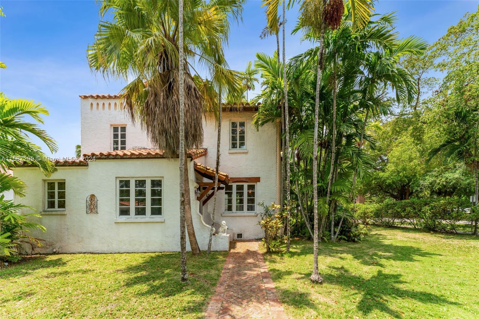 Charming Historic Home in Coral Gables! This exquisite residence offers a private, commodious living space on a generous 13,200 square foot corner lot, with vast potential. Nestled around a serene courtyard, this elegant two-story home boasts 3 spacious bedrooms and 3 full bathrooms. Recently updated, the interior harmoniously blends the timeless charm of a classic Coral Gables home with stylish modern touches throughout. Seize the opportunity to add your personal touch to this classic beauty today and make it yours.