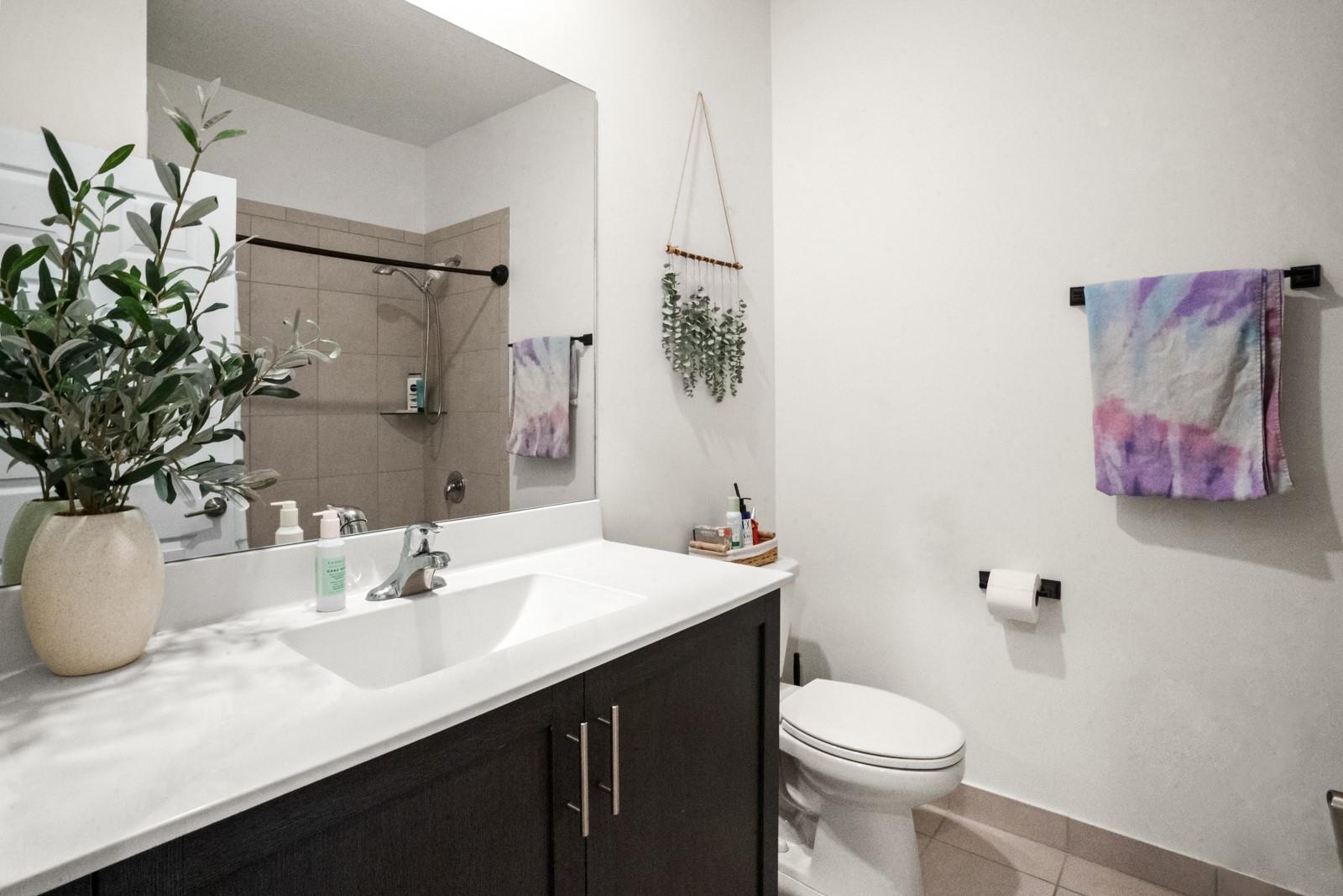 One of a kind corner unit that is highly upgraded. Kitchen features quartz counter tops and a slate ledger backsplash. Porcelain flooring throughout the downstairs area. Upstairs area features vinyl flooring as well as the stairs leading up. Custom light fixtures throughout. Vanity added to powder room. Blackout shades in bedrooms and sheer shades in living area. All windows are tinted and have accordion shutters. Rear patio area features custom pavers and wooden fence is stained. Ring cameras outside the unit for safety. One car garage and two car tandem driveway. Guest parking available also. This unit won't last !!!!