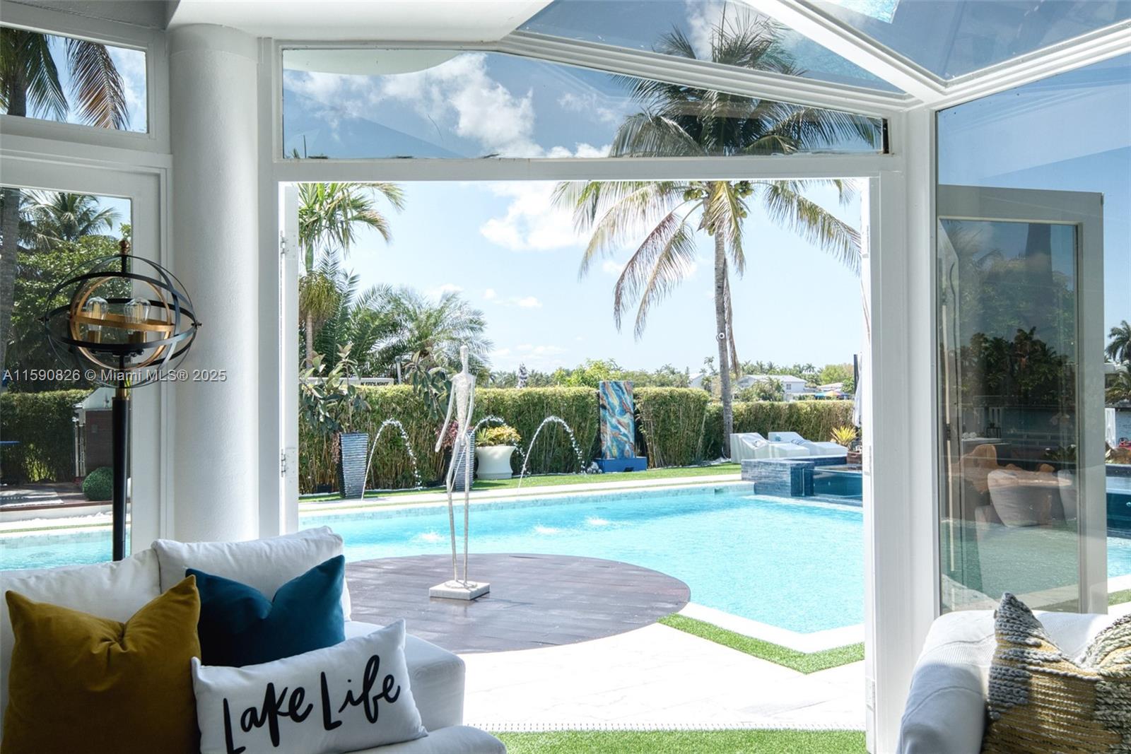 STEP INTO THE BODEGA HOME - A ONE-OF-A-KIND CELEBRITY-OWNED WATERFRONT STATE, WHERE ELEGANCE MEETS PRIVACY AND LIFESTYLE. NESTLED ON AN EXPANSIVE- 17.546 SQ FT LOT, THIS 6 BEDROOM, 5.5 BATHROOM MASTERPIECE BOASTS 75 FEET OF PREMIUM WATER FRONTAGE WITH EASY OCEAN ACCESS—A TRUE PARADISE FOR YACHTING ENTHUSIASTS. AS YOU ENTER THROUGH THE 10 FT EURO WALL PIVOT FRONT DOOR, THE LAMBORHINI OF DOORS YOU'RE GREETED BY SOARING 26-FOOT CEILINGS AND DRAMATIC FLOOR-TO-CEILING WITH NATURAL LIGHT AND OFFER BREATHTAKING WATER VIEWS FROM EVERY ANGLE. A TRUE ENTERTAINER'S DREAM. THE HOME FEATURES A CUSTOM OF 700+ BOTTLE WINE CELLAR, IDEAL FOR CONNOISSEURS AND COLLECTORS ALIKE. THE GOURMET CHEF'S KITCHEN FLOWS INTO EXPANSIVE FORMAL AND CASUAL LIVING SPACES.