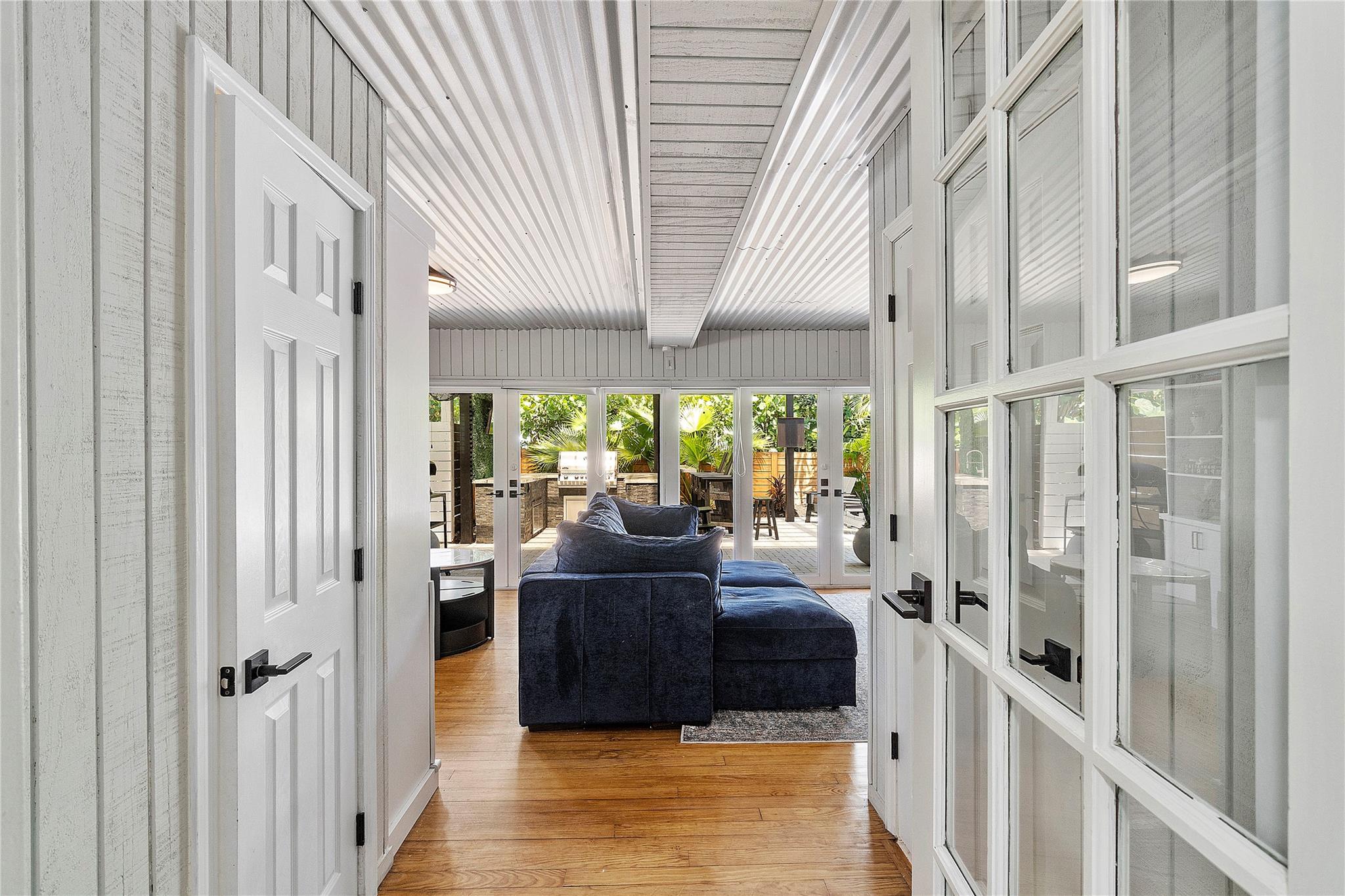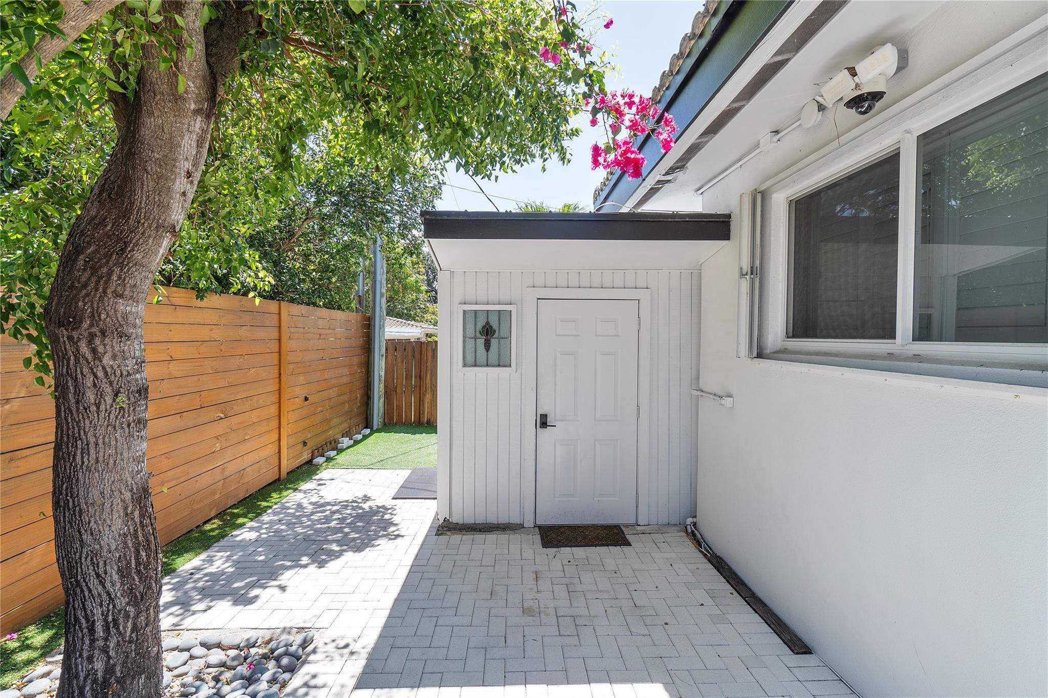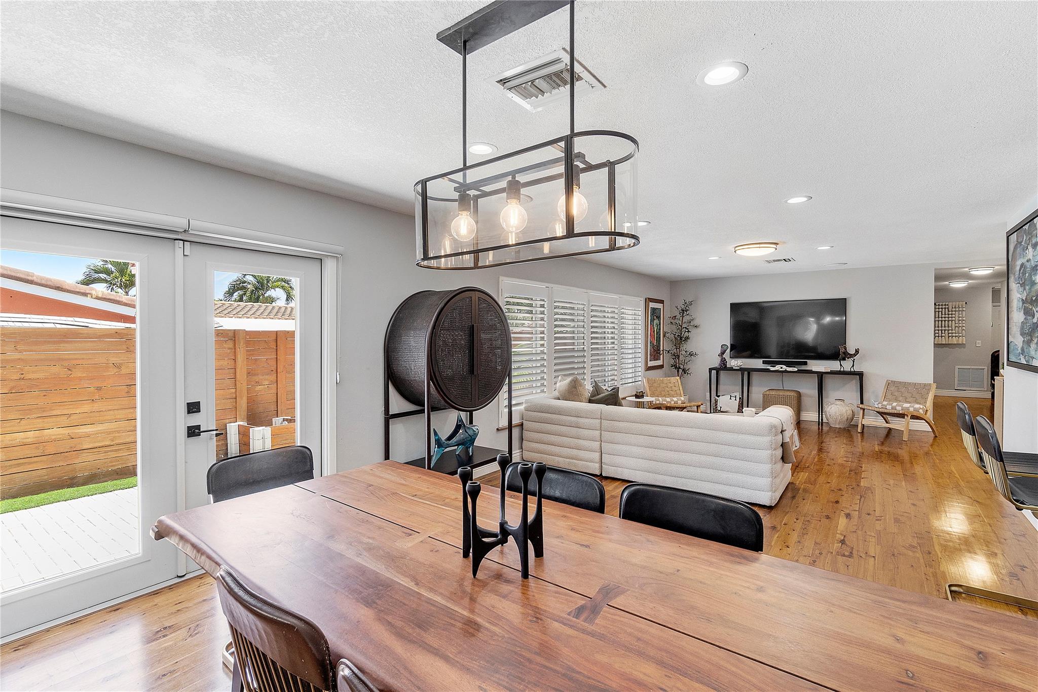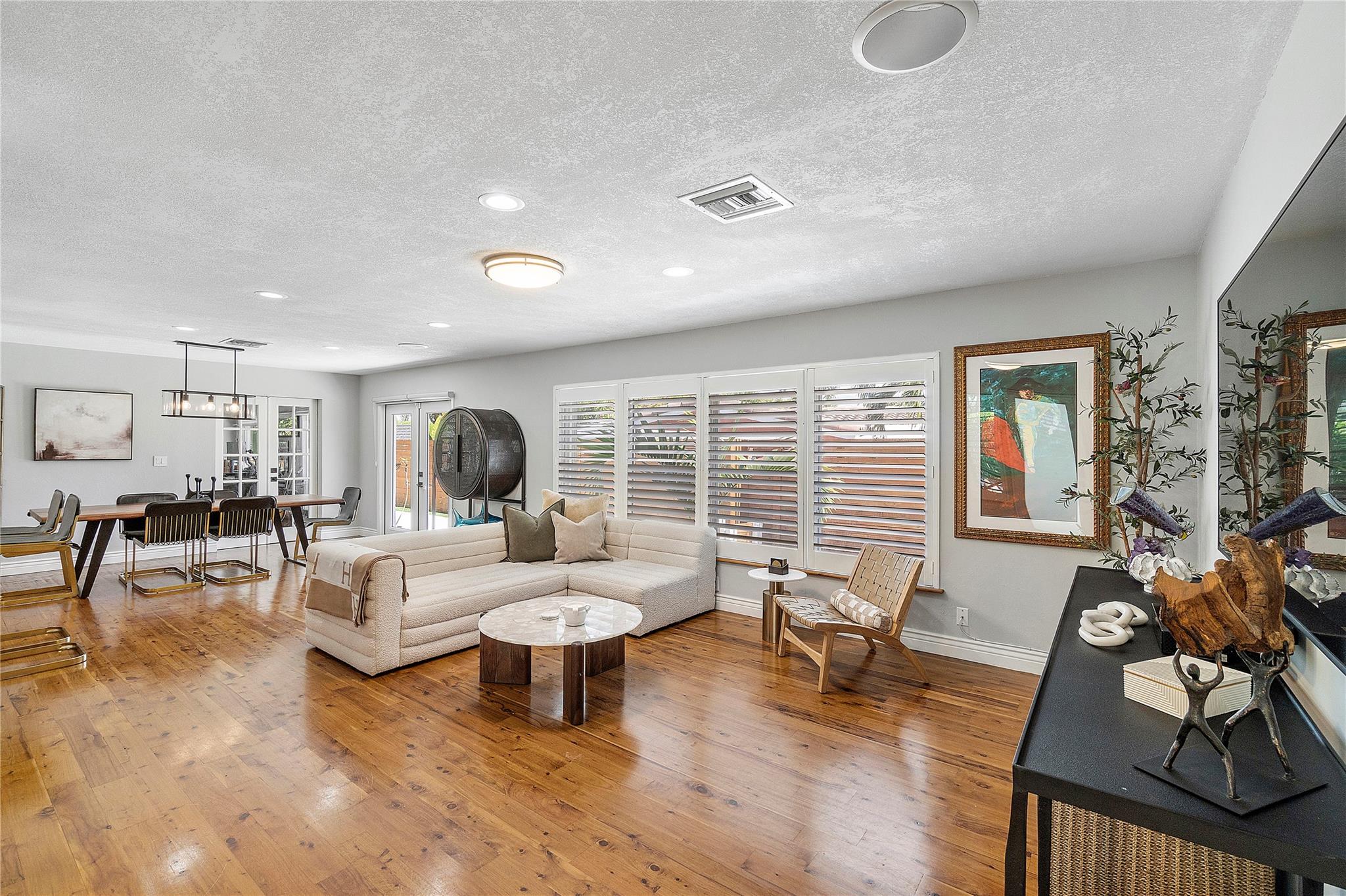 Step into this breathtaking, coastal-style home with modern updates nestled on a spacious, corner lot just 1 mile to the beach! This 3/3 home has superb curb appeal and plenty of parking with a large open front porch. Newly re-designed backyard includes: custom pergola with color changing lights, TV, kitchen with built-in Napoleon grill, granite counters, over 2,000 sf of pavers, fresh turf, fence & landscaping. All bathrooms have been remodeled. Two additional rooms include an office plus a den that can serve as MIL suite. Additional features include a new flat roof installed 2024, indoor laundry room, Australian Cypress flooring, plantation shutters, new water heater and 22kW generator connected to natural gas. Prime location home on quiet street close to beaches, restaurants & shopping.