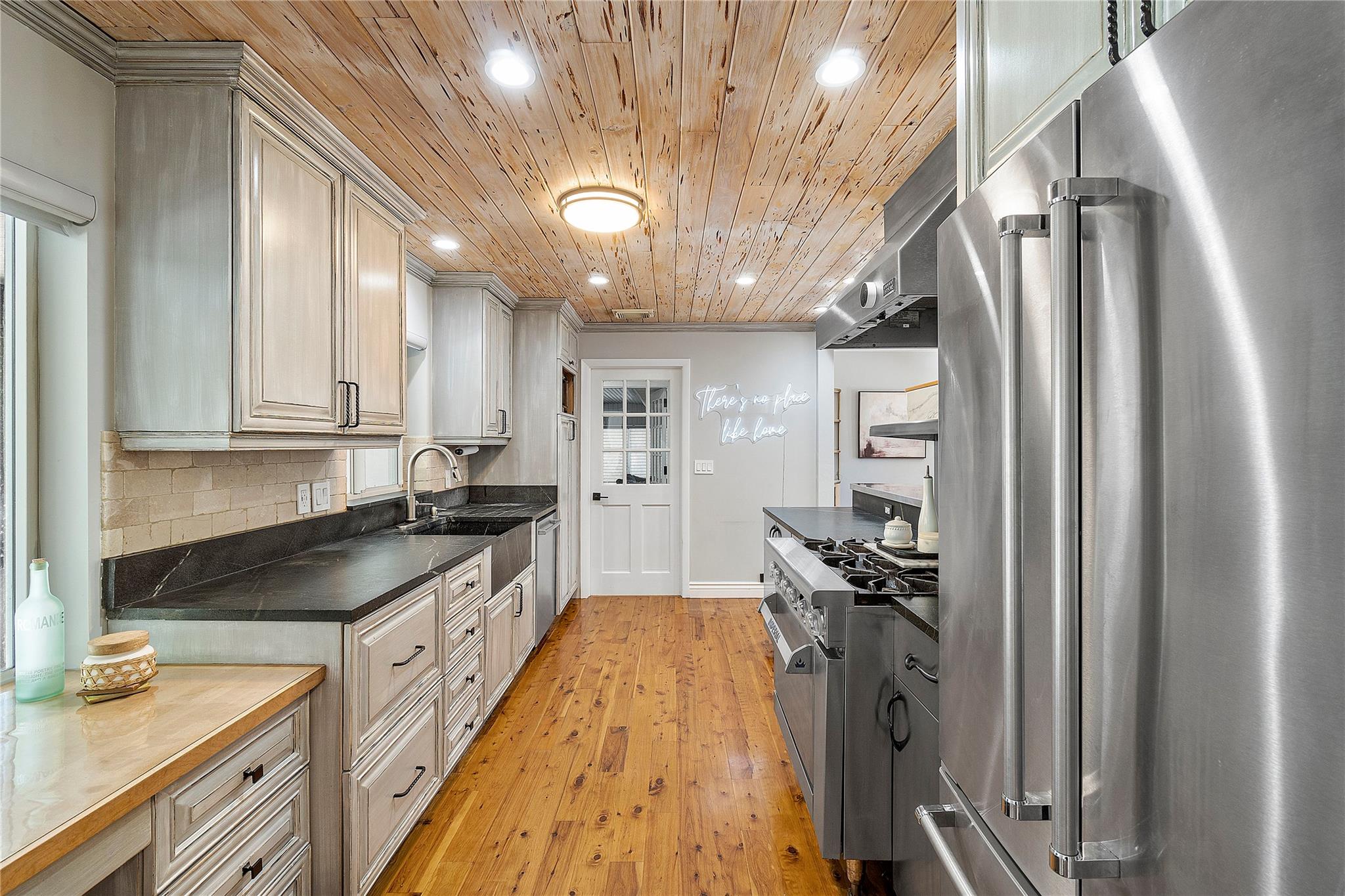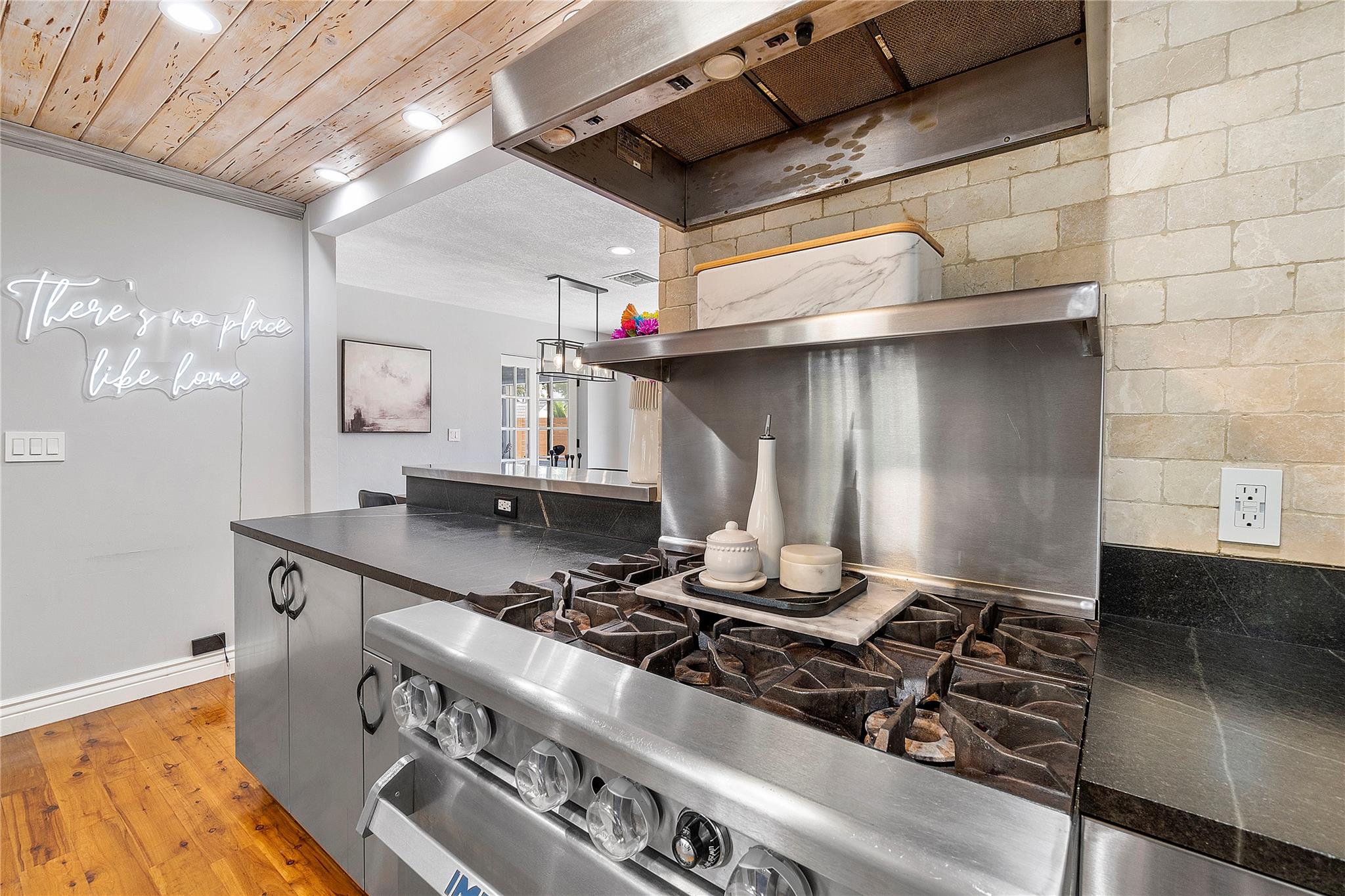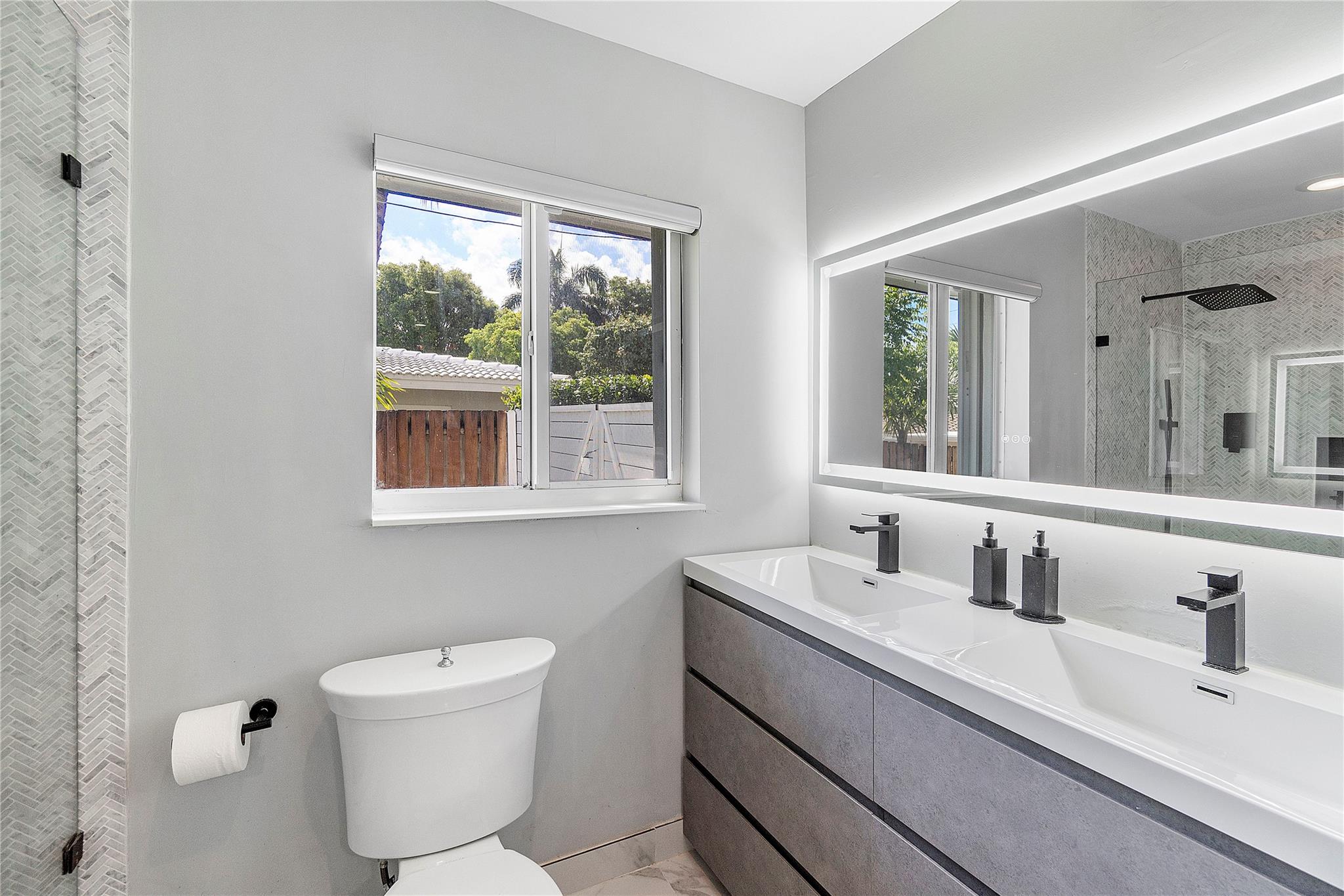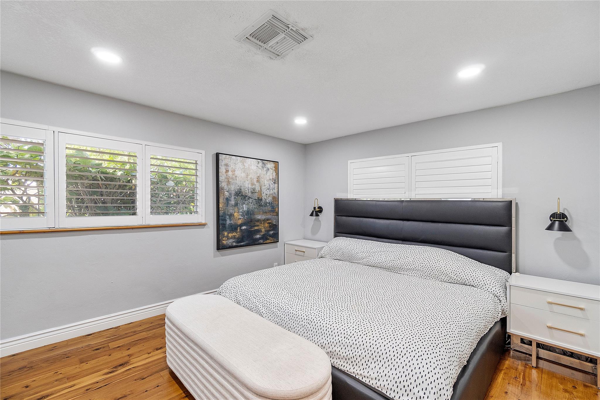 Step into this breathtaking, coastal-style home with modern updates nestled on a spacious, corner lot just 1 mile to the beach! This 3/3 home has superb curb appeal and plenty of parking with a large open front porch. Newly re-designed backyard includes: custom pergola with color changing lights, TV, kitchen with built-in Napoleon grill, granite counters, over 2,000 sf of pavers, fresh turf, fence & landscaping. All bathrooms have been remodeled. Two additional rooms include an office plus a den that can serve as MIL suite. Additional features include a new flat roof installed 2024, indoor laundry room, Australian Cypress flooring, plantation shutters, new water heater and 22kW generator connected to natural gas. Prime location home on quiet street close to beaches, restaurants & shopping.