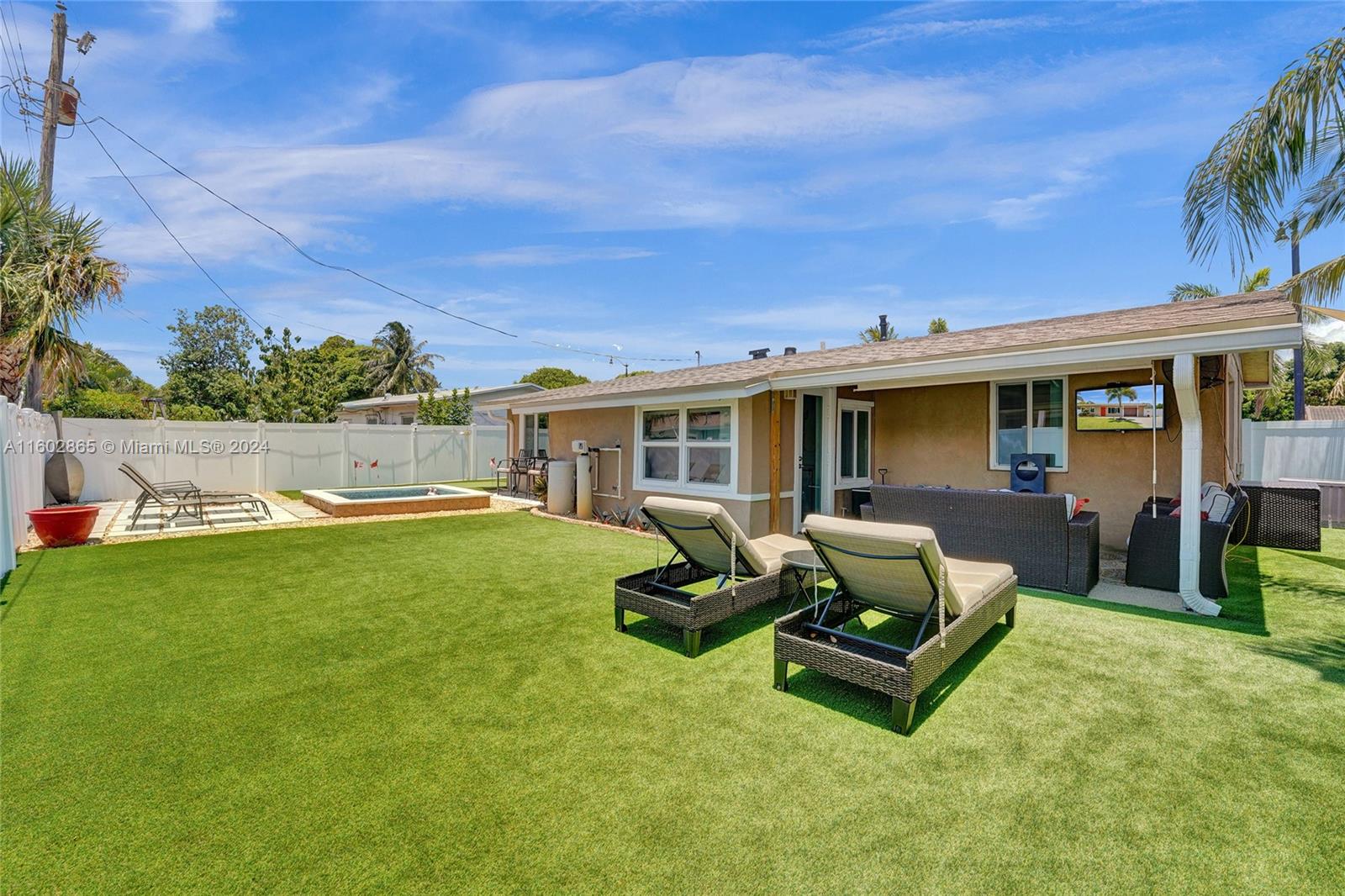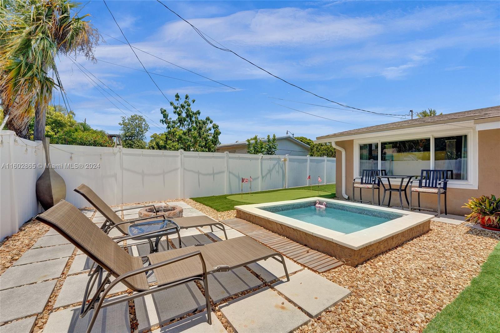Stunning and TURN KEY =3 Bedroom/2 Full bathroom home in Cresthaven of Pompano Beach. This split floor plan has plenty of natural light offering an open kitchen w/ black granite counters & Stainless Steel appliances-The backyard is an oasis with pet friendly turf for easy maintenance, a plunge pool & pro putting green. Every box is checked from curb appeal, style, cleanliness, functionalbility, but most importantly.... location as you are minutes from the beach, Whole Foods, Pompano Pier, all kinds of eateries, parks, highways & fitness centers! Components- Storm rated Impact Windows/Doors, 2023 Roof, AC 2015, Tankless Water Heater, Concrete Block Construction, Water Purifier Filter System, 2 Electric Panels(150 AMP each) & combo of PVC-Cast Iron-Copper plumbing.