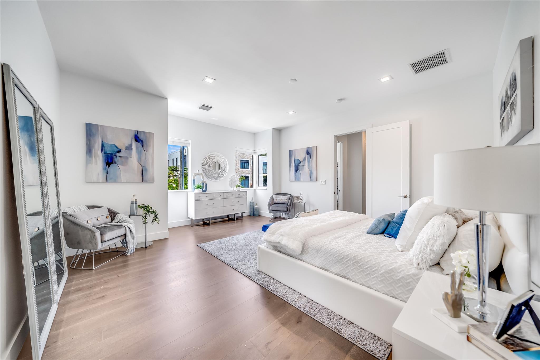 This stunning 3 bed, 3.5 bath townhome with private pool is appointed with designer finishes throughout. Corner unit with ample natural light, Gorgeous chef's kitchen with imported Italian cabinets, Quartz kitchen countertops, JennAir stainless steel appliances including under counter wine cooler! Clean, modern aesthetic with luxurious marble tile flooring in living areas & wood floors in bedrooms. Expansive master bedroom with dream walk-in closet & spa-style bathroom with freestanding tub. Pavered wrap-around patio with sparkling pool perfect for entertaining guests. Laundry room features full-size stacked washer/dryer. Huge private garage w/ power outlet for electric car, paved driveway, patios & balconies. No expense spared & a location to be envied, in the heart of Victoria Park.